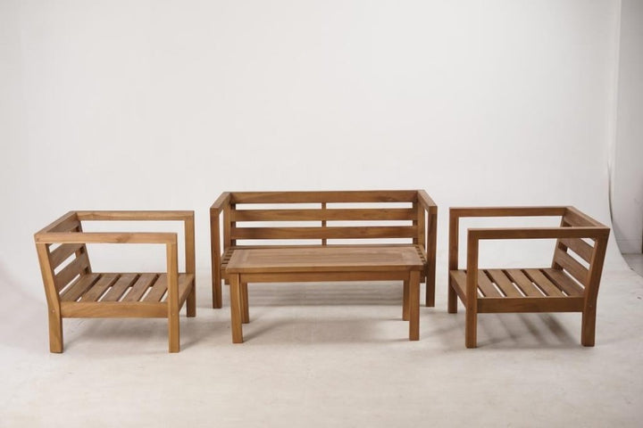 Realizzato in pregiato legno massiccio di teak questo salotto garantisce resistenza e durata nel tempo.