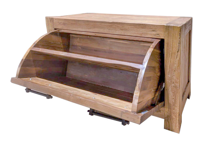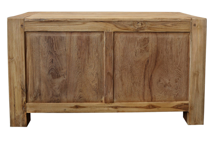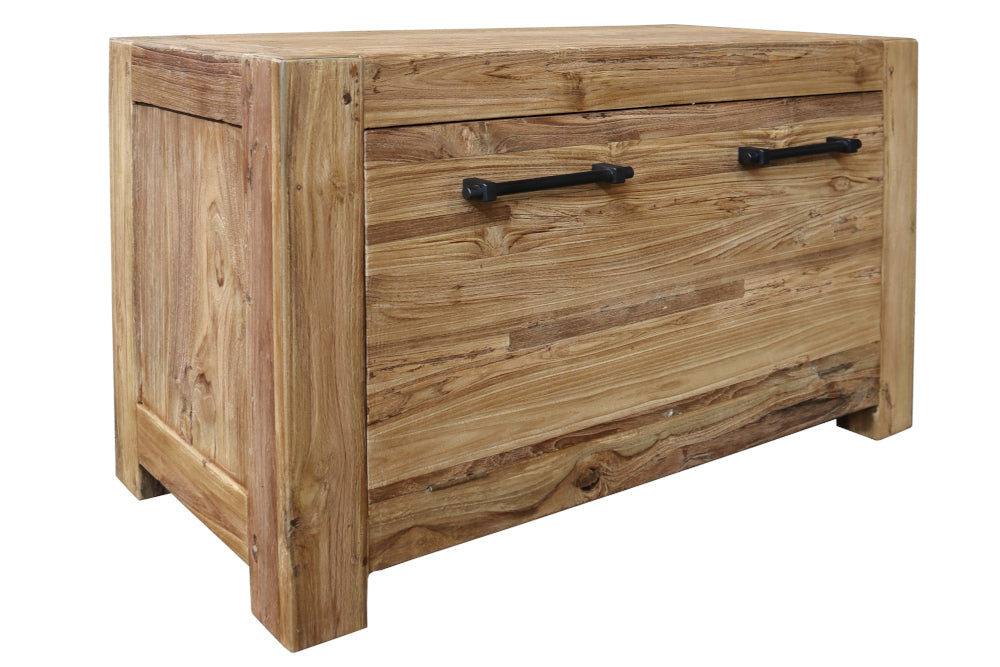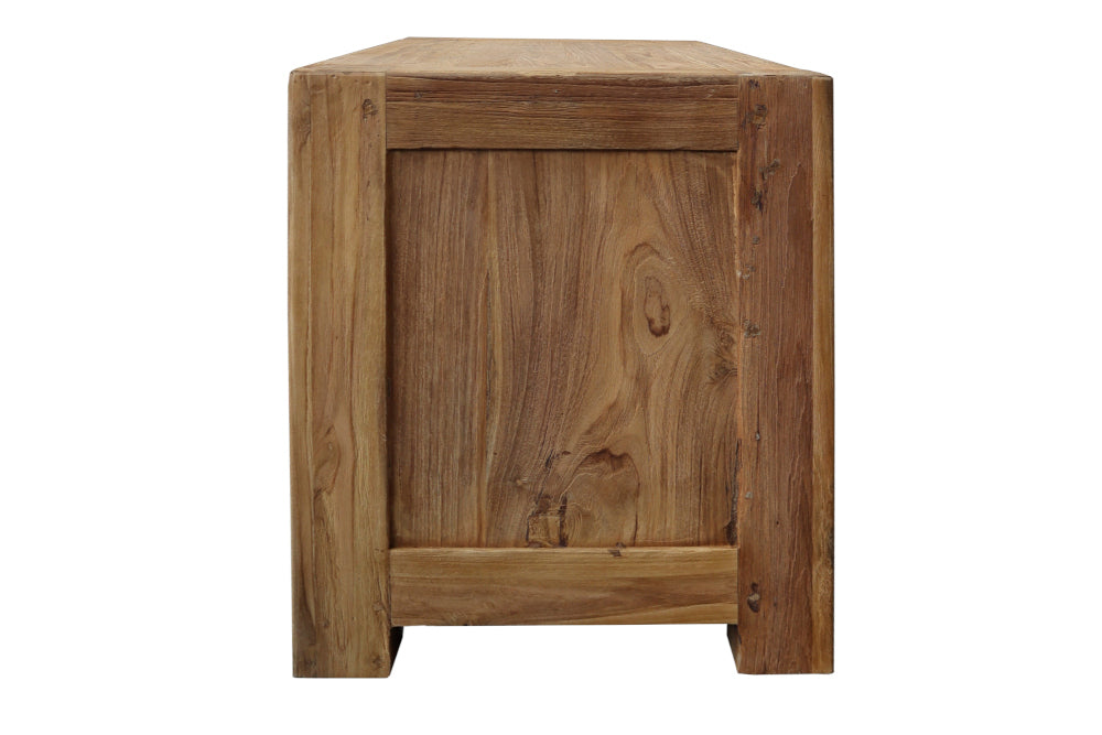 Mobili realizzati in teak stagionato recuperato da antiche case indonesiane, da tonalità naturali e la superficie spazzolata donano un fascino unico al mobile che lo distingue dal legno nuovo.