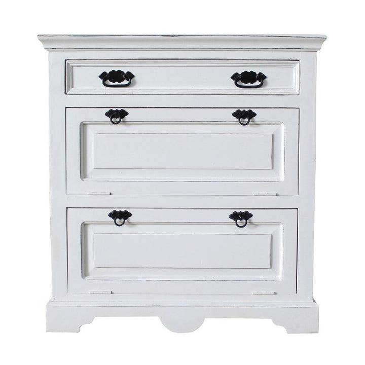 Design ScandInavo: Il design scandinavo è sempre di moda, e questa scarpiera incarna perfettamente l'eleganza senza tempo. La finitura bianco antico aggiunge luminosità e stile al tuo spazio.
