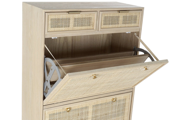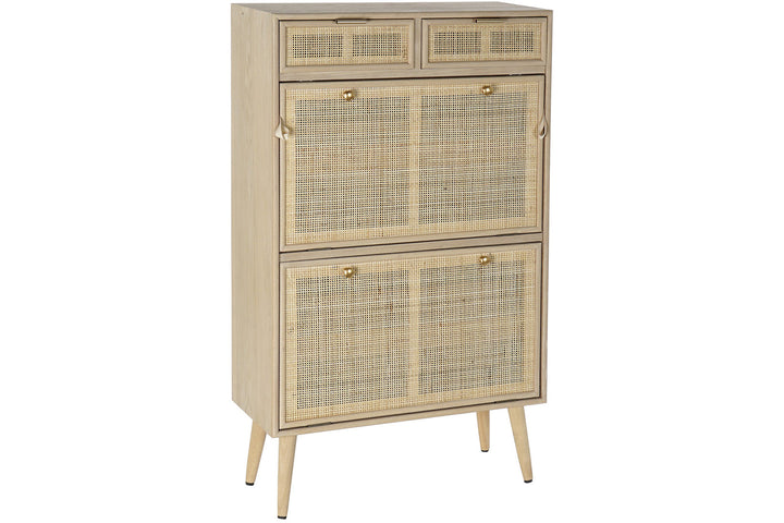 Il stile scandinavo, o nordico, è amato per la sua semplicità, funzionalità ed eleganza. Questa scarpiera stile scandinavo è realizzata in legno di paulownia e rattan, offrendo una soluzione di archiviazione pratica e decorativa. Le sue dimensioni (cm 70 x 32 H 120) e il peso (22 kg) la rendono robusta e stabile. Con 4 cassetti (larghezza 32,5 cm, profondità 23,5 cm, altezza 11 cm) e 2 ante a ribalta con doppi scomparti (larghezza 66,5 cm, profondità 30 cm, altezza 40 cm), questa scarpiera può contenere circa 12-16 paia di scarpe, a seconda delle dimensioni. Il design minimalista e i dettagli in rattan aggiungono un tocco di leggerezza e naturalezza, tipico di questo stile. La vendita di mobili scandinavi online permette di trovare pezzi unici che trasformano ogni spazio in un ambiente accogliente e ordinato. Scegliere questa scarpiera significa portare in casa un elemento di design che celebra la funzionalità e l'estetica tipica del Nord Europa.
