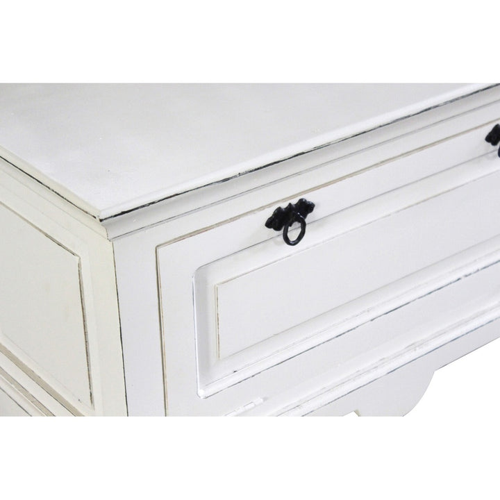 NOTE: Legno di mango e MDF con finitura bianco antico, dimensioni 85×40×45 cm, peso 23,2 kg. Lavorazione artigianale con leggere variazioni di tonalità e segni di usura voluti.