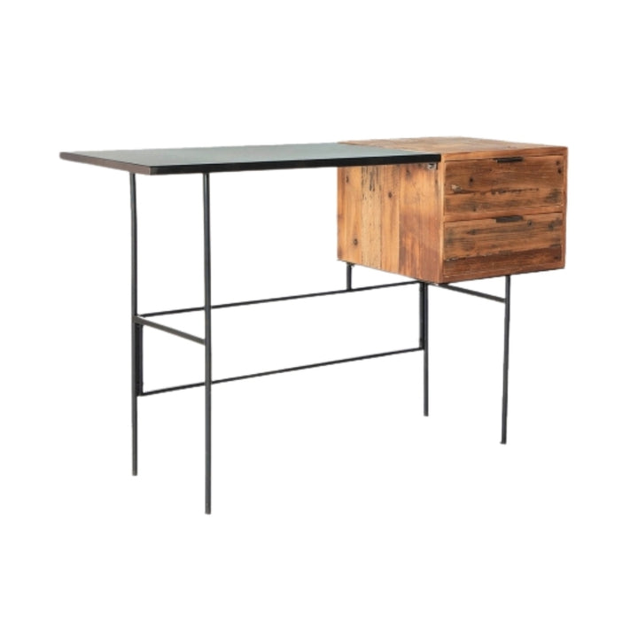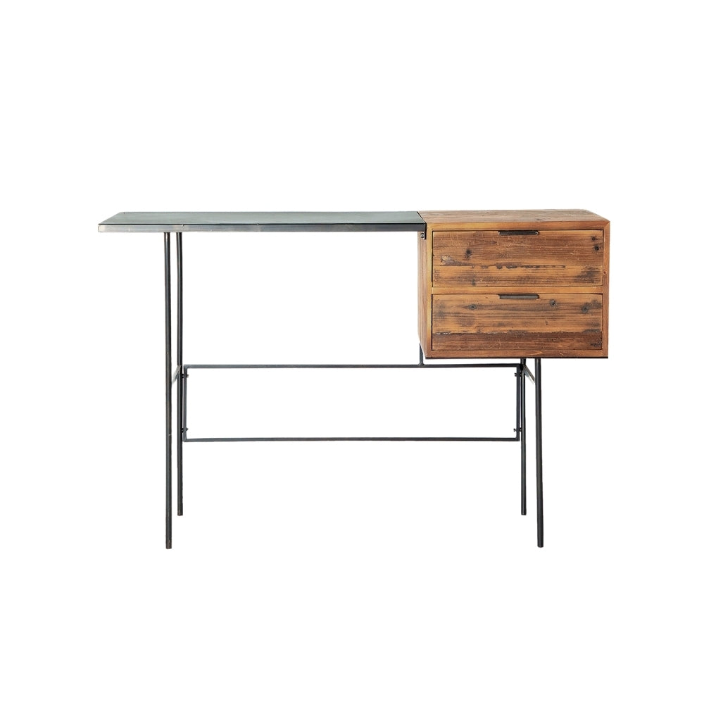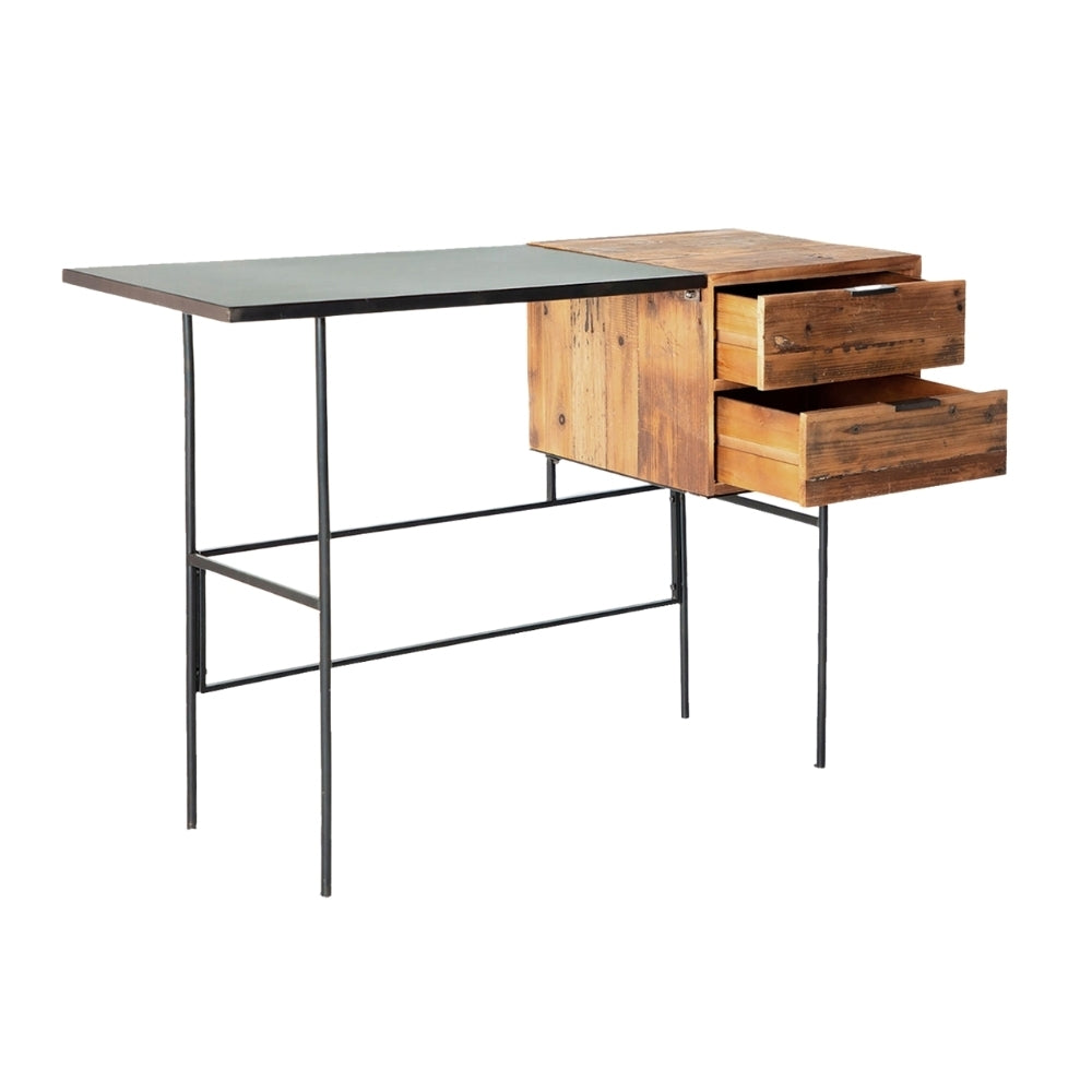 Scrivania Rettangolare Industriale in Ferro Nero e Legno di Abete