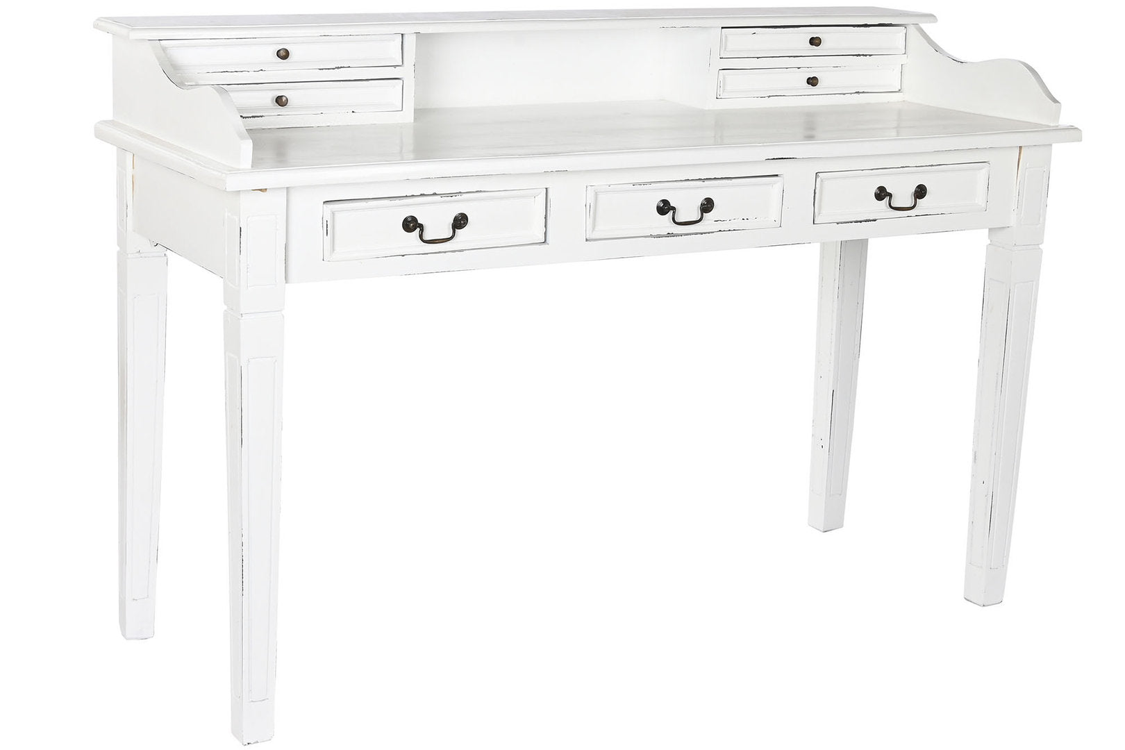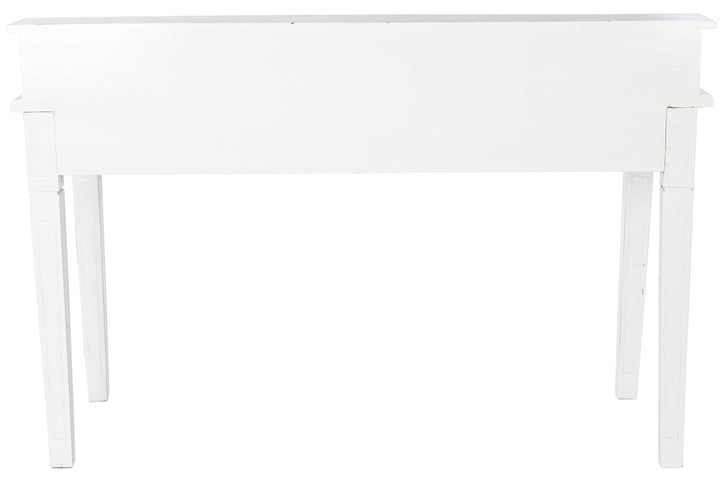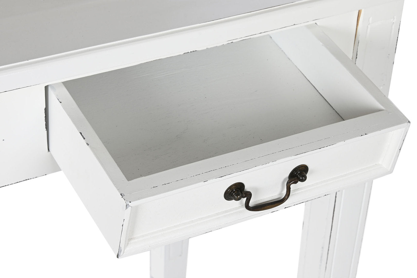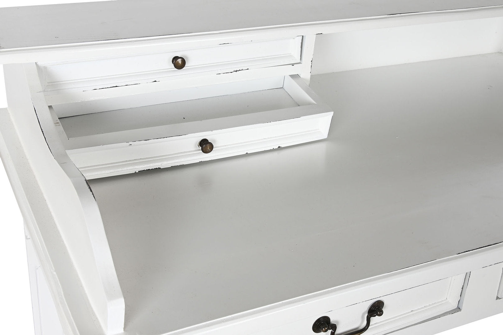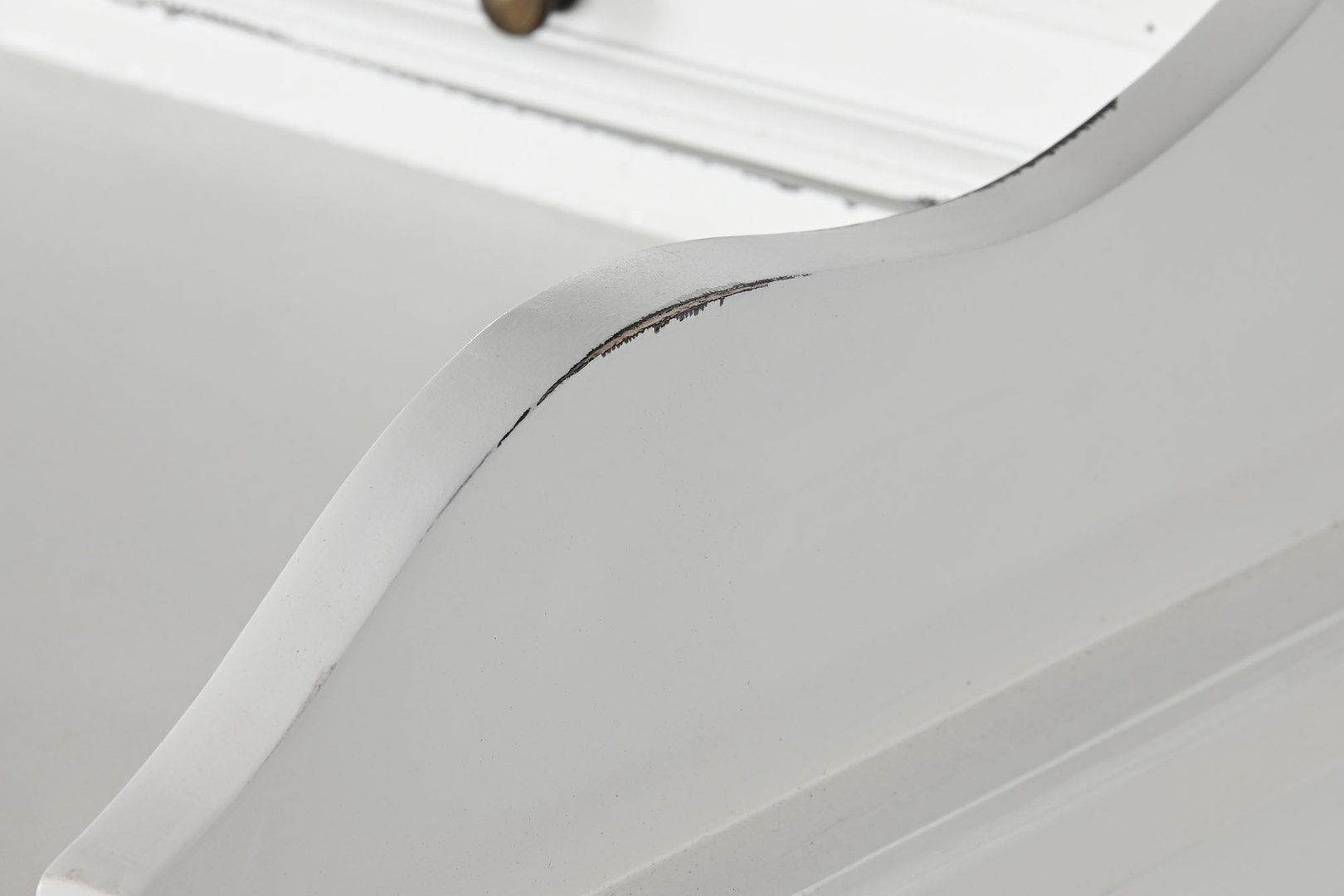 Questa scrivania, con la sua finitura bianca brillante e i segni sottili di usura, incarna perfettamente la tendenza shabby chic. È progettata per sembrare invecchiata e delicatamente consumata, portando un'atmosfera accogliente e nostalgica in qualsiasi interno. Le linee eleganti, le gambe tornite e le modanature dettagliate sono caratteristiche classiche dello stile shabby chic, che spesso trae ispirazione dal decoro tradizionale rustico e dal vintage francese. I molteplici cassetti e il design pratico indicano anche una fusione di stile e utilità, rendendola un pezzo affascinante e al tempo stesso funzionale per le case che mirano a combinare comfort con sofisticatezza. Immergiti nel raffinato stile shabby chic con questa esclusiva scrivania bianca, perfetta per impreziosire il tuo spazio di lavoro con un tocco di eleganza mediterranea. Realizzata in legno massello di mogano, la scrivania si distingue per la sua robustezza e durata nel tempo, offrendo un design atemporale che si adatta sia a interni moderni che tradizionali. Le dimensioni generose di 150 cm di larghezza, 57 cm di profondità e un'altezza complessiva di 100 cm garantiscono un ampio spazio di lavoro, mentre il peso di 38 kg testimonia la solidità del mobile. Dotata di sette cassetti di varie dimensioni, con il cassetto principale di 39,5 cm di larghezza, 14 cm di profondità e 4,6 cm di altezza, offre soluzioni organizzative versatili per mantenere l'ordine e l'efficienza.