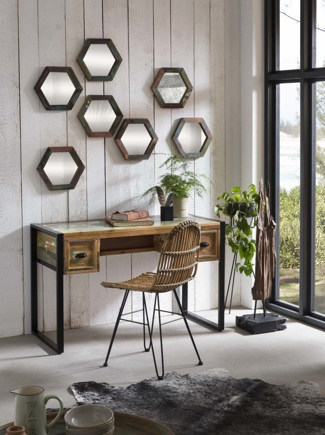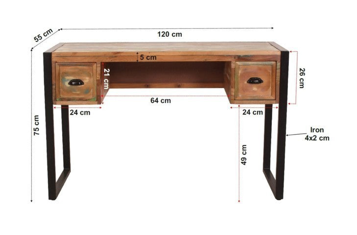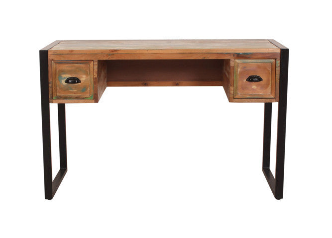 Scrivania in Legno di Recupero con Cassetti e Struttura in Metallo