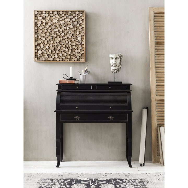 Impressiona con il suo design antico. L’ampia scrivania offre un’area di lavoro spaziosa, ideale per tutte le tue esigenze di scrittura e organizzazione. Dietro la tapparella si trovano 5 scomparti aperti e un piccolo cassetto che offrono spazio sufficiente per diversi utensili da ufficio.
