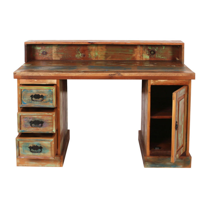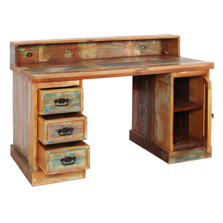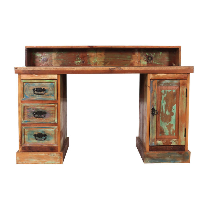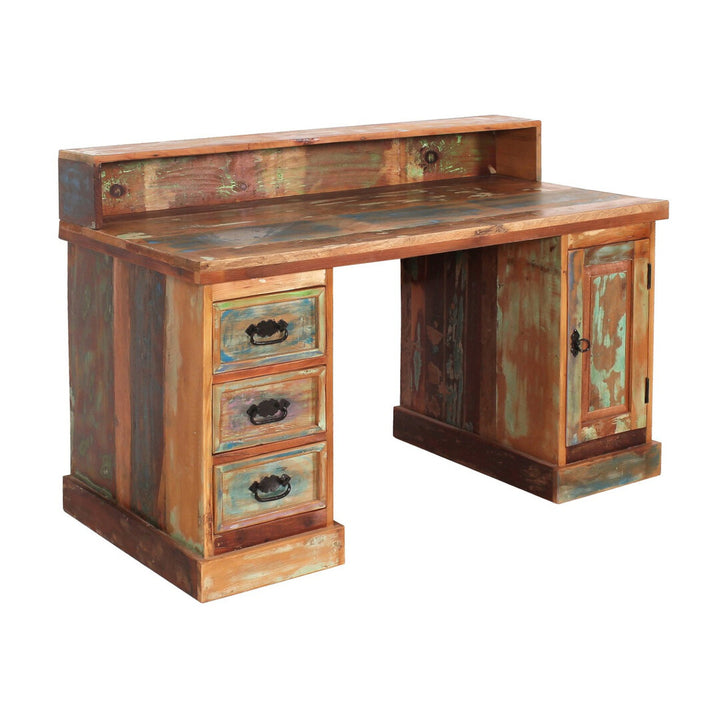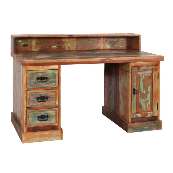 Scrivania in Legno di Recupero con Cassetti e Struttura in Metallo