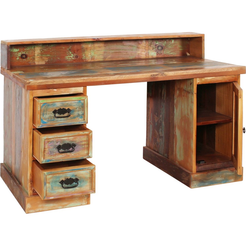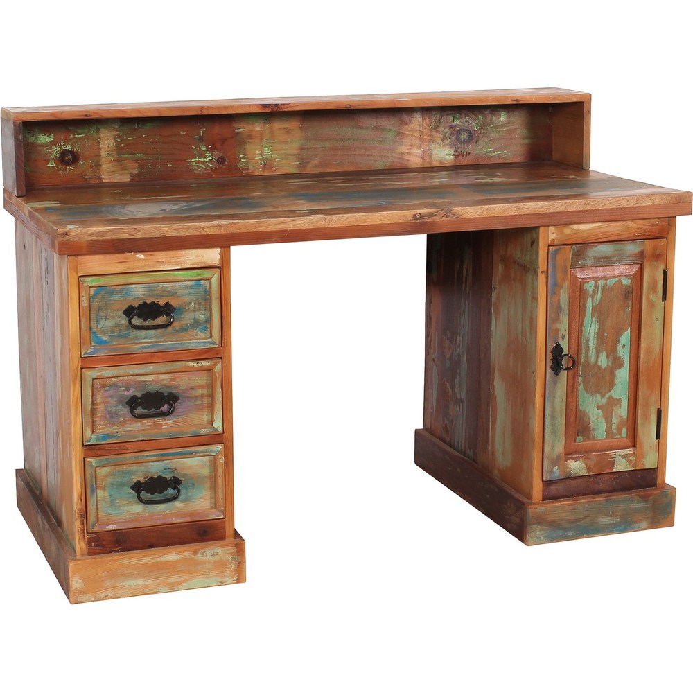 Scrivania in Legno di Recupero con Cassetti Stile Industriale
