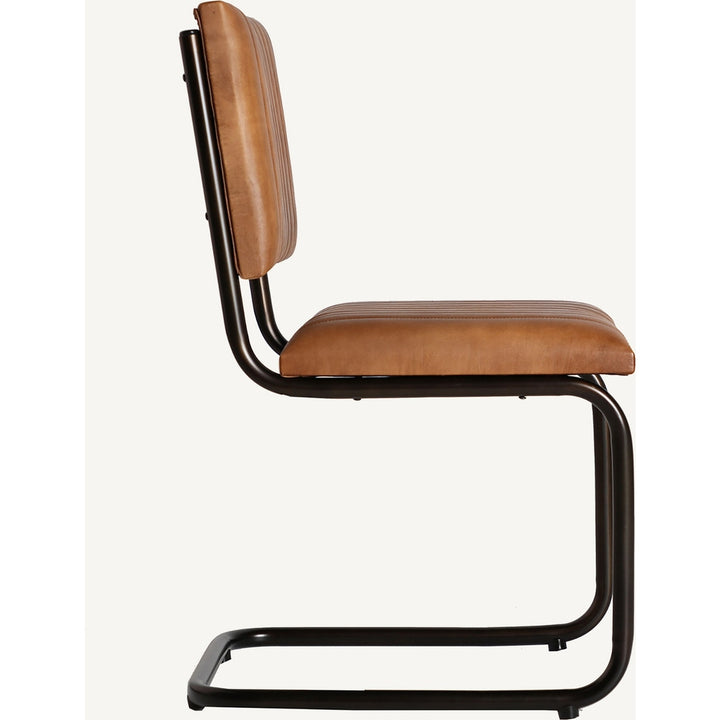 NOTE: Ferro marrone, pelle di capra, schiuma ad alta densità, 6,8 kg, seduta 44 x 42 x 5 cm, altezza seduta 47 cm, portata 105 kg, realizzata a mano.