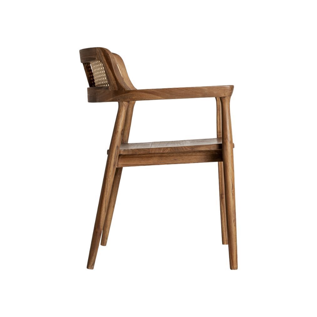 Lo stile Art Déco si distingue per le sue linee eleganti, il design raffinato e l’uso di materiali pregiati. Perfetta per chi cerca sedute eleganti online, questa sedia coniuga fascino retrò e comfort moderno, ideale per arricchire un salotto esclusivo, una sala da pranzo sofisticata o uno studio dal gusto ricercato. Realizzata in legno massello di teak con finitura marrone e seduta in rattan intrecciato, è un pezzo artigianale unico, con leggere variazioni di tonalità e piccole imperfezioni come nodi e segni naturali, che ne esaltano l’autenticità. La struttura solida garantisce stabilità e supporta fino a 100 kg. Il design ergonomico con schienale e braccioli assicura una seduta confortevole. Dimensioni della seduta: 46 x 46 x 2 cm, altezza seduta da terra: 46 cm, altezza braccioli: 66 cm. Consegnata già montata, pronta per valorizzare i tuoi ambienti con un tocco esclusivo.