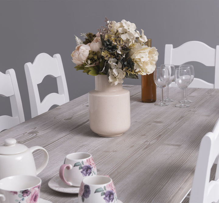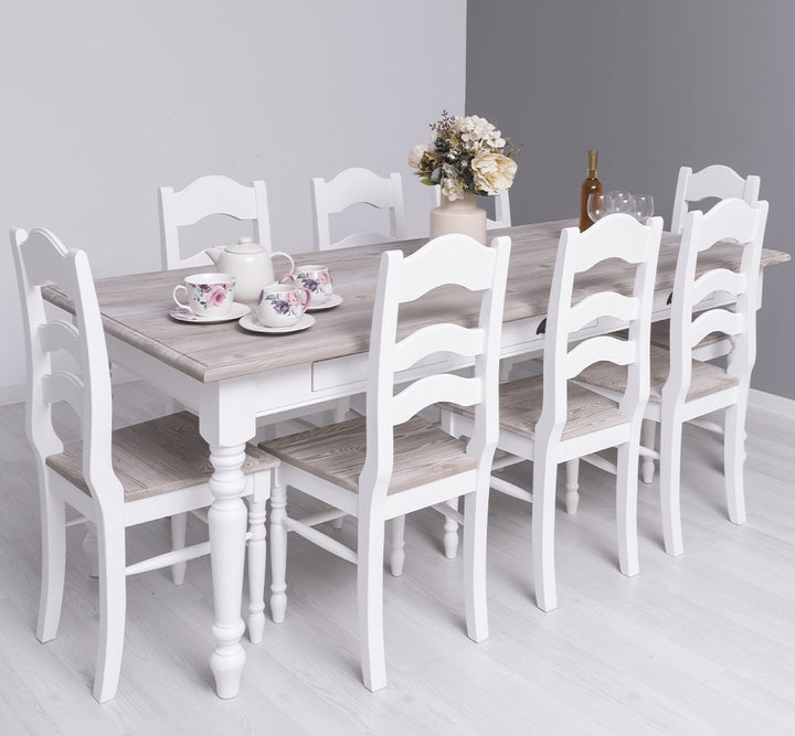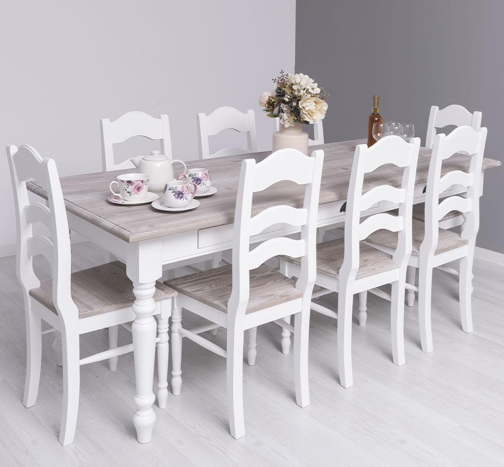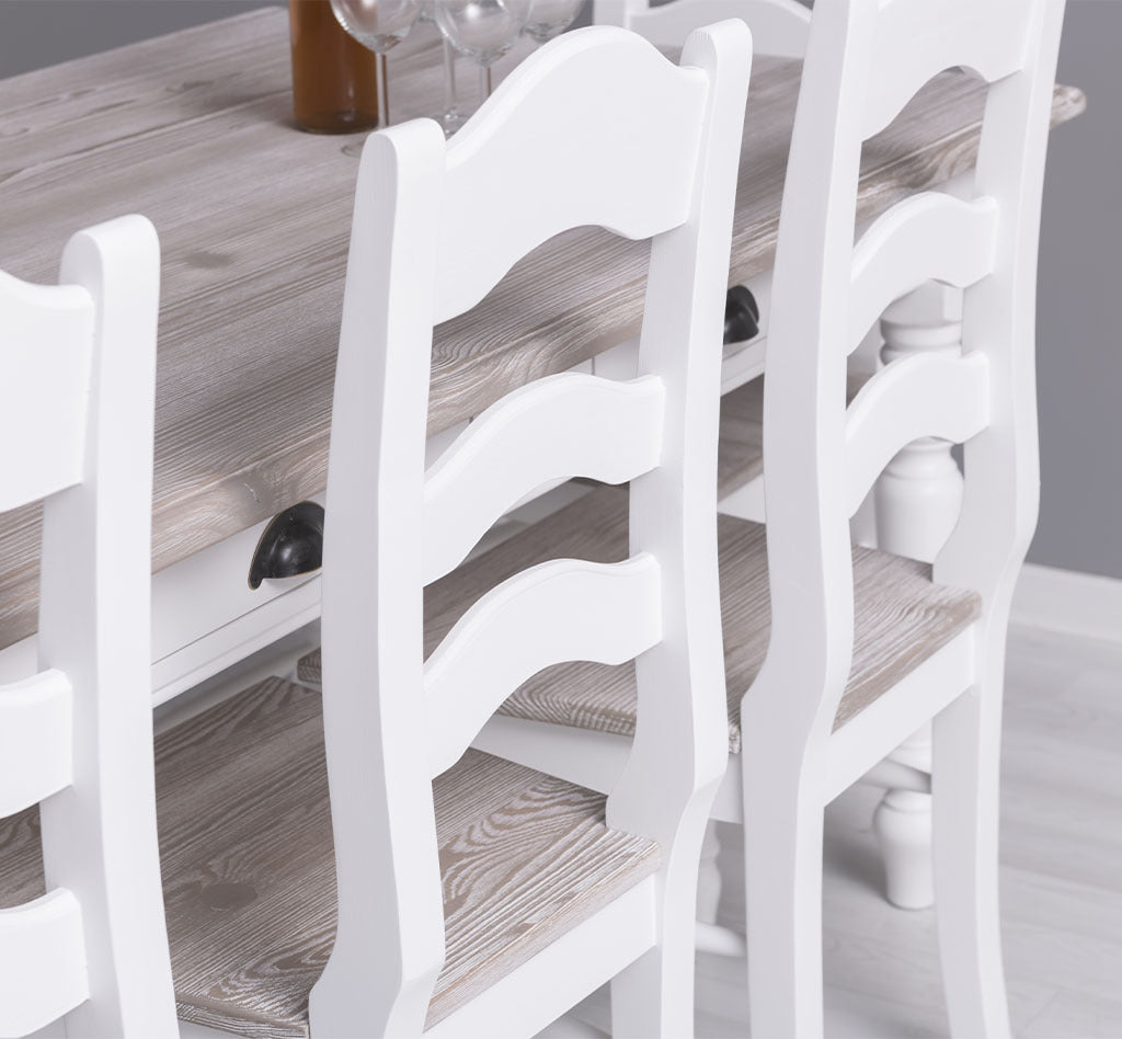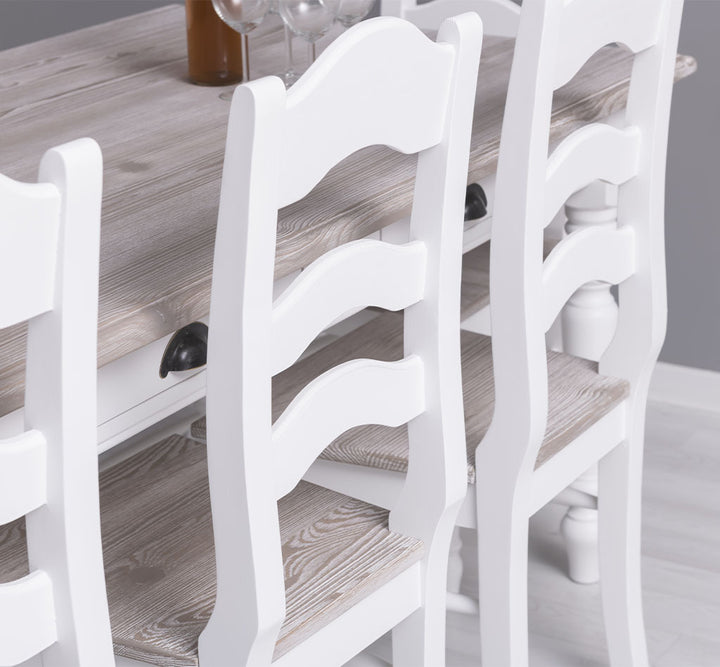 Lo stile shabby chic è amato per il suo fascino rustico e senza tempo, che aggiunge calore e carattere a qualsiasi ambiente. Questa sedia è realizzata in legno massello di pino al 100%  garantendo robustezza e longevità. Con dimensioni di 44 x 44 x H 102 cm, è ideale per chi cerca un design che unisca funzionalità ed estetica. La struttura e lo schienale solidi offrono un supporto confortevole, mentre le gambe tornite esaltano l’eleganza classica perfetta per soggiorno o cucina. Consegnata assemblata, questa sedia è pronta per l'uso immediato, e la sua costruzione di qualità