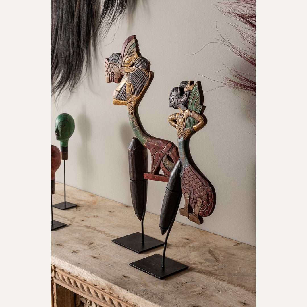 Porta il fascino dell’artigianato etnico direttamente nel tuo arredamento con queste figure decorative etniche realizzate in legno tropicale. Il loro stile multicolore e le forme artistiche richiamano tradizioni lontane, donando al tuo ambiente un’atmosfera ricca di storia e autenticità. Ogni pezzo è lavorato artigianalmente, rendendo ogni figura unica con piccole imperfezioni che aggiungono carattere e originalità. Le tonalità vibranti si combinano per creare un effetto di contrasto che valorizza sia ambienti moderni che più classici, conferendo un accento esotico al design complessivo. Queste sculture staccabili diventano protagoniste indiscusse, perfette per un ingresso, un soggiorno o qualsiasi spazio che abbia bisogno di un tocco distintivo e personale.