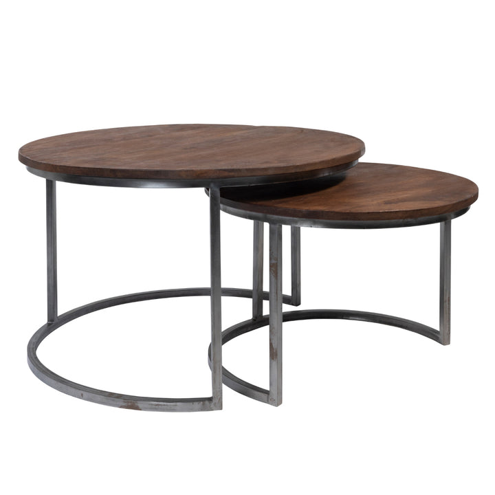 Set 2 Tavolini Rotondi Industrial in Legno e Ferro