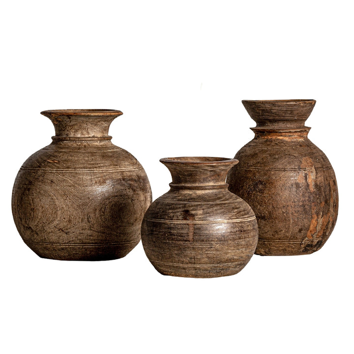 Set 3 vasi etnici legno massello