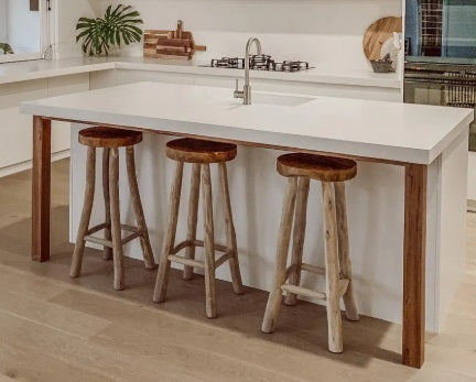 Questo sgabello da bar in teak chiaro aggiunge un tocco di fascino rustico e naturale a ristoranti, bar o alla sala da pranzo e soggiorno di casa. Realizzato con una solida struttura in legno di teak, noto per la sua resistenza e durabilità, ogni sgabello è unico grazie alle venature del legno che variano da un pezzo all'altro. Le gambe curve accentuano il carattere rustico, rendendo ogni sgabello un'opera artigianale. Le dimensioni di 37 x 37 x 76 cm e il diametro della seduta di 35 cm lo rendono perfetto per aggiungere stile e funzionalità a qualsiasi spazio. Già assemblato, pronto all'uso, questo sgabello è ideale per chi cerca un pezzo dal design distintivo e naturale.