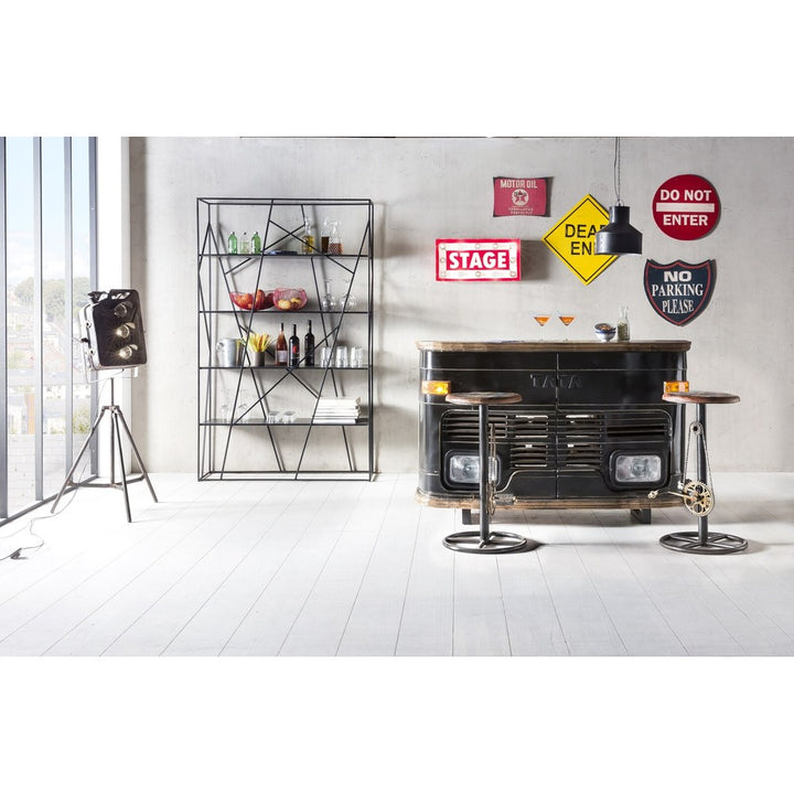 Sgabello Bar Industriale Alto in Legno di Mango e Acciaio