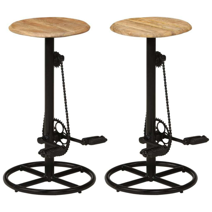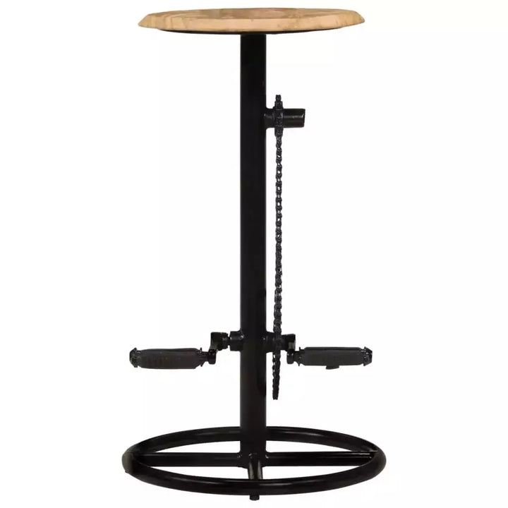 Questo set di sgabelli industriali combina legno massello di mango e acciaio per un design robusto e autentico, perfetto per aggiungere un tocco di stile vintage a cucine, sale da pranzo o bar. La struttura in metallo garantisce stabilità, mentre il legno lavorato con cura presenta variazioni naturali di colore e venature, rendendo ogni pezzo unico. I poggiapiedi ispirati ai pedali di una bicicletta aggiungono funzionalità e originalità al design. Dimensioni di 38 x 38 x 76 cm, ideali per ambienti moderni e industrial chic. Ogni sgabello è lucidato, dipinto e laccato con cura artigianale. La confezione include due sgabelli già pronti per il montaggio. Perfetto per chi cerca arredi industriali vintage esclusivi e di qualità.