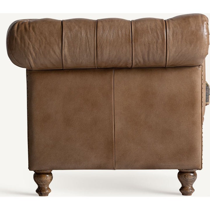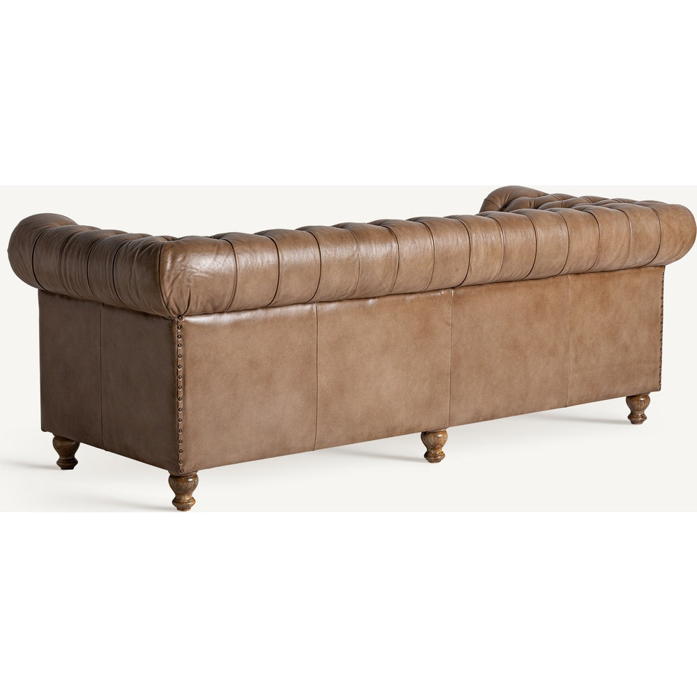 Questo divano di lusso in pelle di cammello unisce l’estetica vintage e di design alla solidità artigianale del legno di pino massello. Le sue linee robuste e le finiture calde donano carattere e raffinatezza a qualsiasi ambiente, rendendolo un complemento d’arredo chic e di pregio. Con dimensioni 215 x 82 x 74 cm e un peso di 63,8 kg, offre una seduta ampia e confortevole (160 x 55 x 16 cm) con altezza da terra di 51 cm. I due cuscini sfoderabili con chiusura a zip (80 x 55 x 16 cm) garantiscono comfort e praticità. La struttura staccabile e le gambe rimovibili facilitano montaggio e manutenzione. Ideale per salotti contemporanei di lusso o ambienti vintage eleganti, aggiunge un tocco caldo e sofisticato. Proposto con sconti fino al 70% su Ethnic Chic.