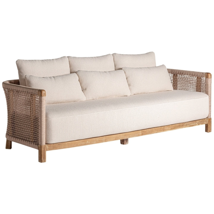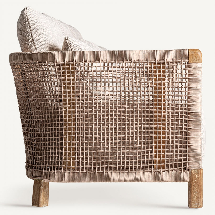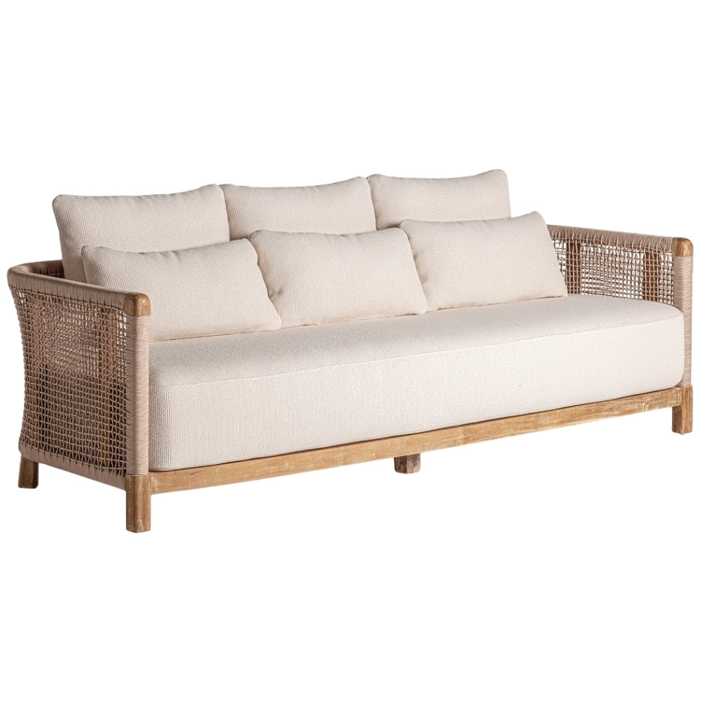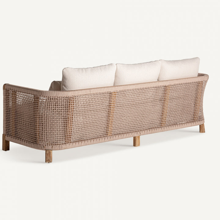Lo stile tropicale chic si riflette in questo sofà che unisce leggerezza e robustezza in un design sofisticato e funzionale. Con dimensioni di cm 240 x 90 H 70 e un peso di 30,7 kg, questo sofà rappresenta una scelta ideale per ambienti che richiedono eleganza e praticità. La struttura è realizzata in legno di teak riciclato, un materiale resistente e sostenibile, mentre il rivestimento in rattan aggiunge un tocco naturale e raffinato. Lo schienale avvolgente, con una dimensione di 213 x 5 x 40 cm, crea uno spazio intimo e confortevole, perfetto per il relax. La seduta, ampia e ben proporzionata, misura 228 x 73 x 31 cm e offre spazio per tre persone. Questo sofà è progettato per resistere agli agenti atmosferici, rendendolo ideale sia per ambienti interni che per l’outdoor. Perfetto per chi cerca divani tropicali online che combinano estetica e funzionalità, questo complemento d’arredo esclusivo eleva ogni spazio con il suo carattere unico e sostenibile.