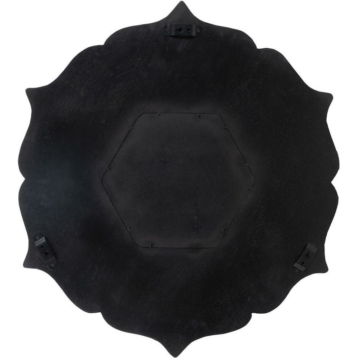 NOTE: Mango marrone intagliato a mano, specchio esagonale 32,5 x 28 cm, include gancio per fissaggio.