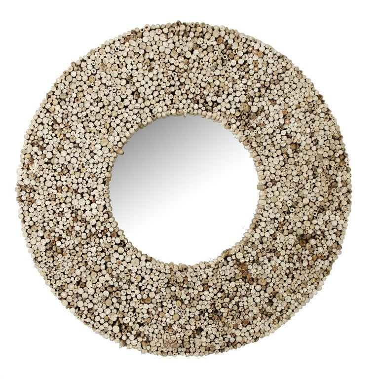 Specchio rotondo etnico in teak