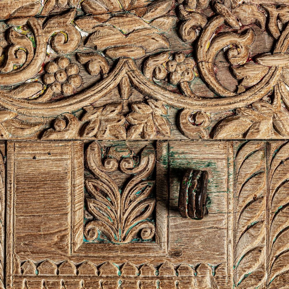 NOTE: Teak massello, finitura invecchiata artigianale, peso 118,7 kg, elemento decorativo importante.