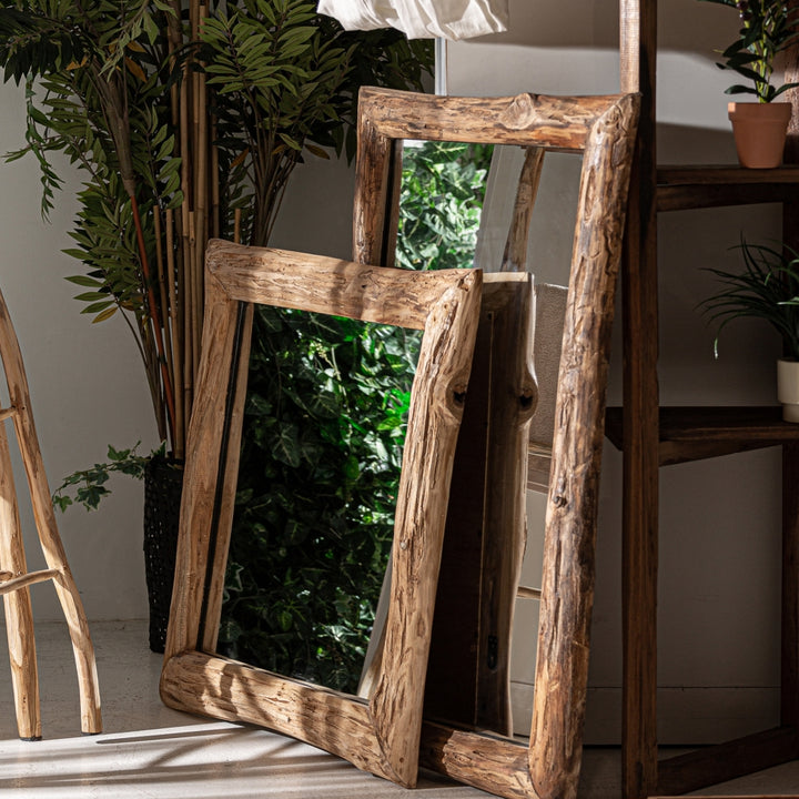 Tra gli elementi decorativi più ricercati,  lo specchio quadrato in legno di mogano è un complemento d'arredo che unisce funzionalità e stile. Questo pezzo, con le sue dimensioni di 90x5x90 cm, si presenta come un punto focale ideale per ogni ambiente, da quello più classico a quello moderno. Il colore marrone naturale e la finitura invecchiata aggiungono un tocco di calore e autenticità, mentre il materiale, il legno di mogano, è sinonimo di qualità e durabilità. Realizzato a mano, ogni specchio porta con sé variazioni uniche di tono e forma, segni distintivi che ne evidenziano il carattere unico e l'artigianalità. Che sia posizionato nella parete del soggiorno o nell'ingresso, questo specchio non è solo un oggetto pratico ma diventa una vera e propria dichiarazione di stile, capace di elevare l'estetica di qualsiasi stanza, peso 10,25 kg.
