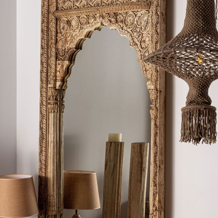 Uno specchio dallo stile etnico e imponente, ideale per arredare ambienti ampi con carattere e autenticità, grazie alla presenza scenica del legno massello lavorato a mano. Realizzato artigianalmente in legno di teak marrone con finitura anticata, è abbinato a uno specchio ampio e luminoso che aggiunge profondità agli spazi. Le dimensioni generose e la struttura robusta lo rendono perfetto per ambienti in stile etnico, coloniale o rustico, come saloni, ingressi o camere padronali. Ogni pezzo è unico, con nodi, venature e segni naturali che raccontano la storia del legno. Con un peso di 89,7 kg, garantisce solidità e qualità artigianale. Un complemento decorativo e distintivo, pensato per chi desidera un arredo di forte impatto visivo.