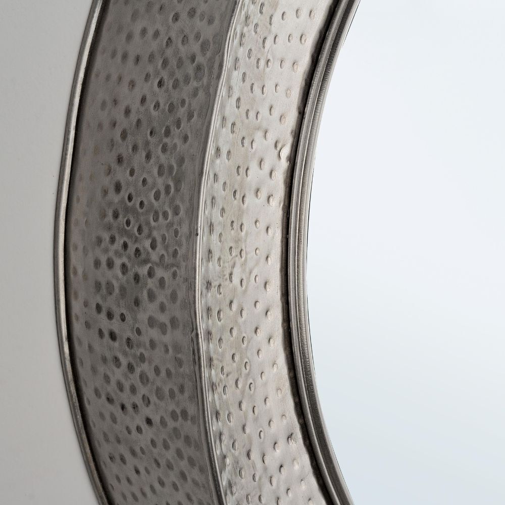 Uno specchio dallo stile glam e contemporaneo, perfetto per ambienti che desiderano un tocco moderno con materiali riflettenti e finiture sofisticate. Realizzato in acciaio con finitura nickel, presenta una cornice ampia e martellata che dona texture e brillantezza. Il diametro utile dello specchio è Ø70 cm, ideale per riflettere la luce e amplificare gli spazi. Ogni pezzo è unico grazie alla lavorazione artigianale, con leggere irregolarità che ne valorizzano l'estetica. Perfetto per ambienti in stile glamour, industriale o moderno, si adatta con eleganza a soggiorni, camere o ingressi. Un complemento luminoso e di carattere per arredare con stile.