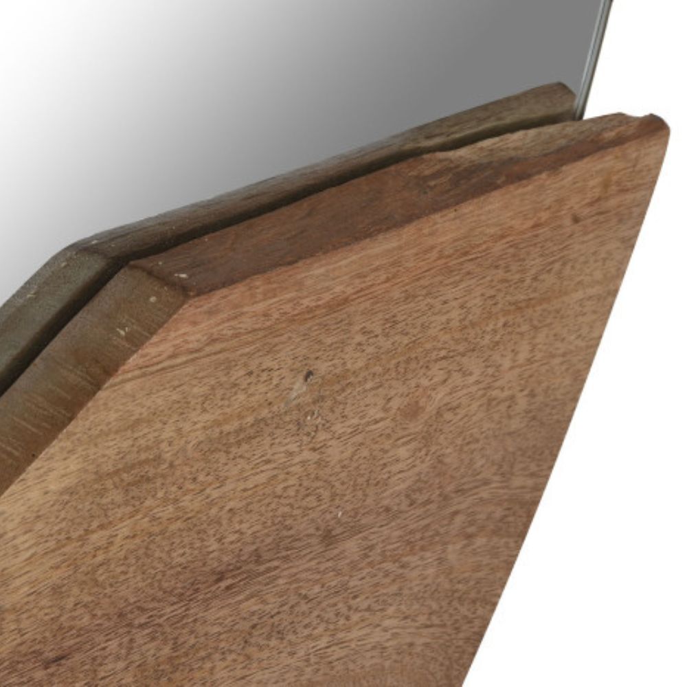Uno specchio dallo stile etnico e organico, ideale per ambienti che prediligono materiali naturali e forme morbide dal forte impatto visivo. Realizzato artigianalmente in legno di mango naturale, si distingue per la sua forma rotonda e il design originale con inserti curvi in legno che incorniciano parzialmente lo specchio. Le venature a vista e la finitura calda rendono ogni pezzo unico e autentico. Perfetto per ambienti in stile etnico, boho o naturale, si integra con arredi in legno grezzo, tessuti naturali e tonalità terrose. Con un diametro importante e una profondità di 8 cm, dona carattere e profondità a soggiorni, camere o ingressi. Un complemento decorativo e materico, pensato per chi ama l’artigianalità e il design.
