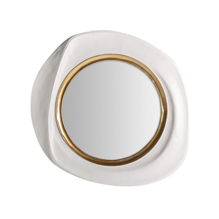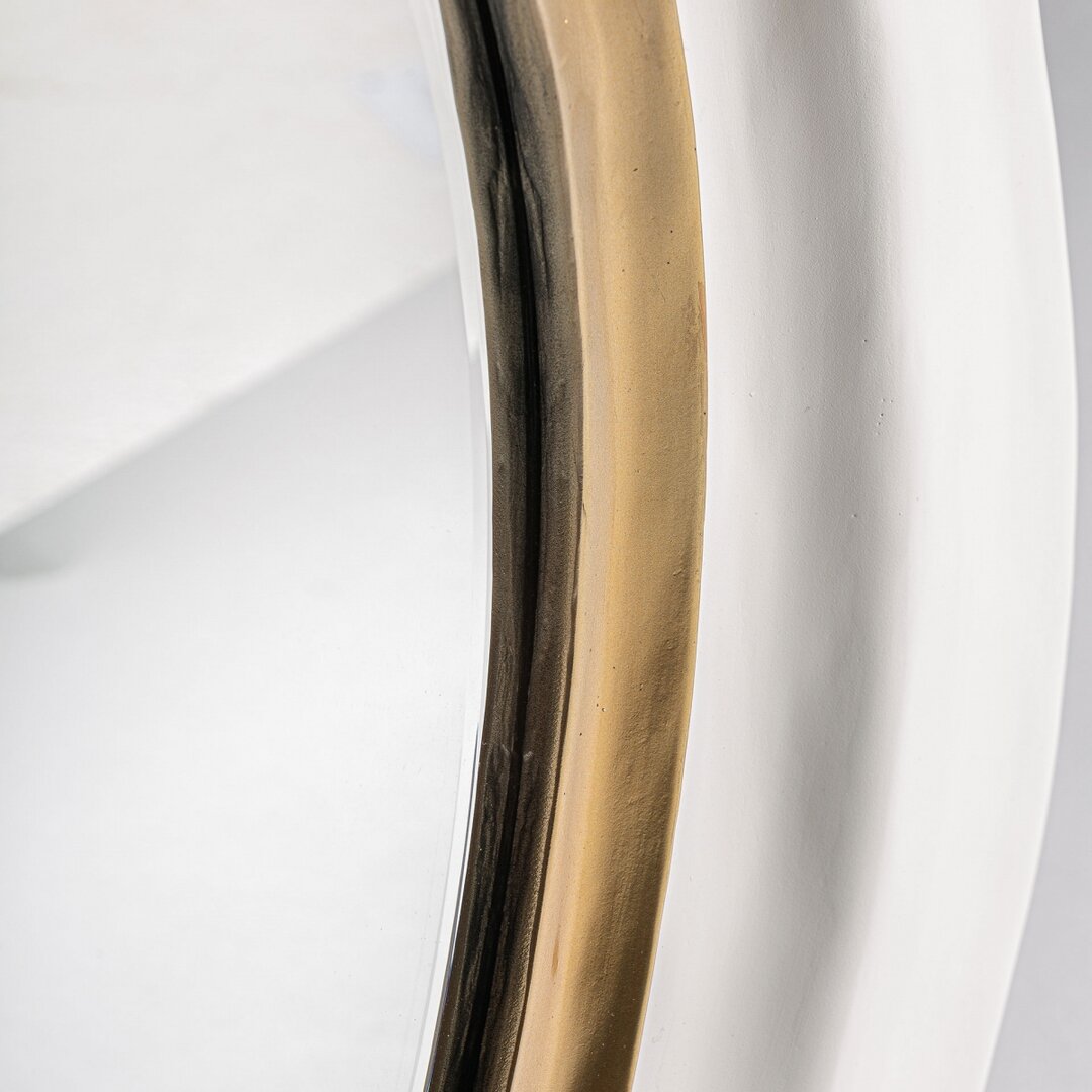Specchio Contemporaneo in Resina Bianca con Dettagli Dorati
