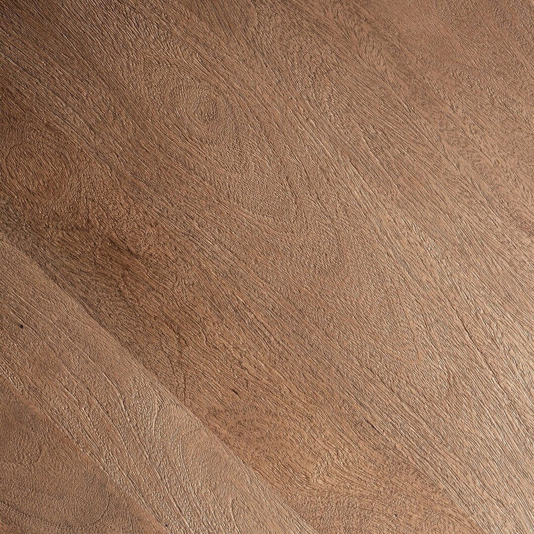Realizzato in legno di mango nero, presenta una superficie resistente e dal fascino vintage, mentre la struttura in ferro naturale assicura solidità e robustezza. Prodotto staccabile per un trasporto e montaggio agevoli. Ideale per bar, loft o spazi dal gusto industrial, è un elemento d’arredo funzionale e di grande impatto estetico.