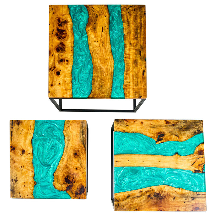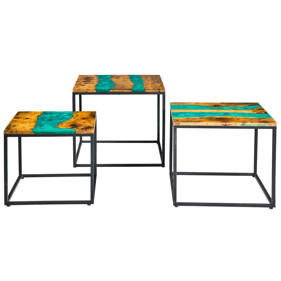 Set 3 Tavolini Industrial Smeraldo: Eleganza Naturale e Moderna