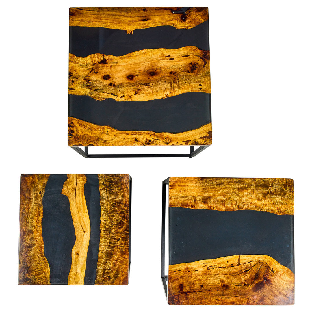 Set 3 Tavolini Industrial Ebano: Eleganza Naturale e Moderna
