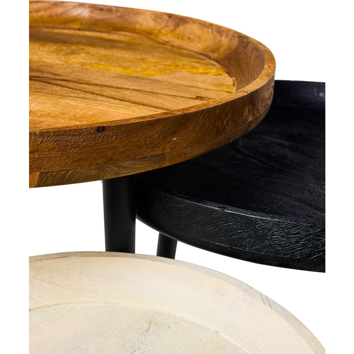 Set 3 Tavolini Rotondi da Salotto Vintage in Mango e Ferro