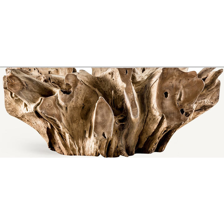 Tavolino in Cristallo con Base in Radice di Teak Naturale