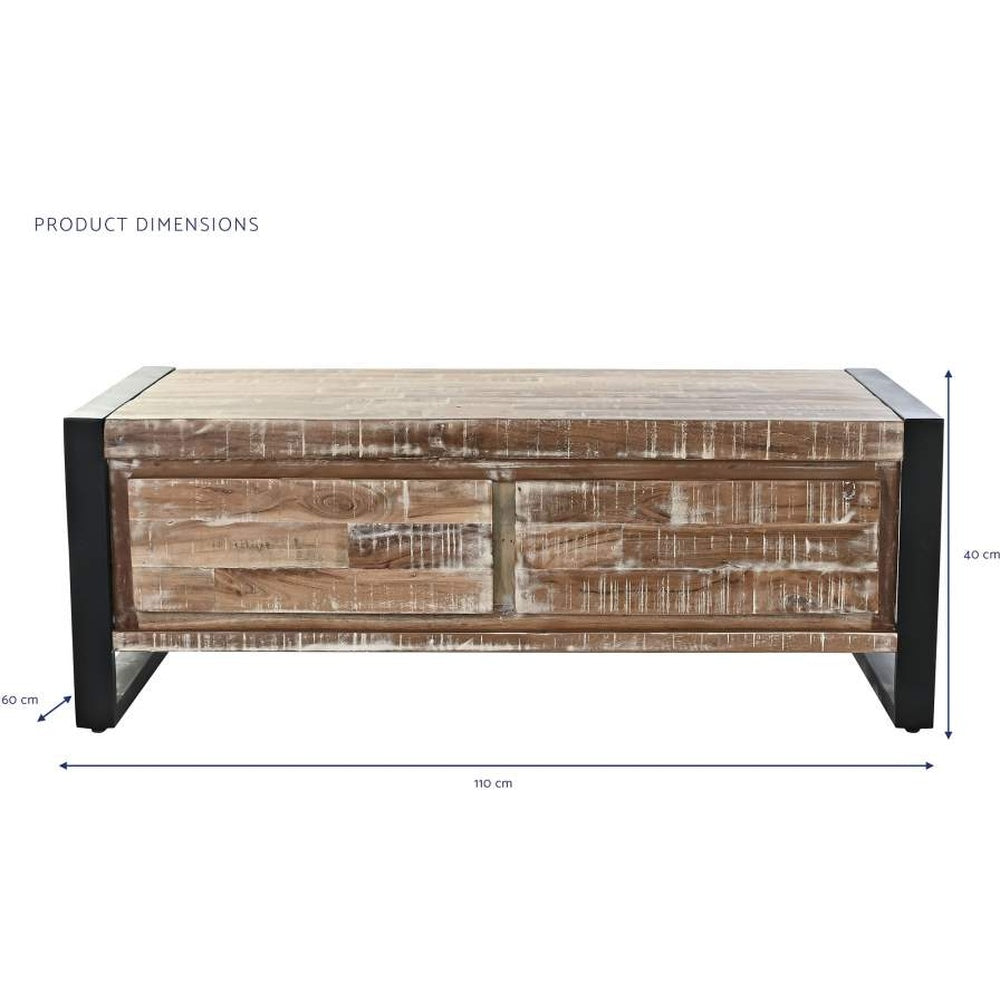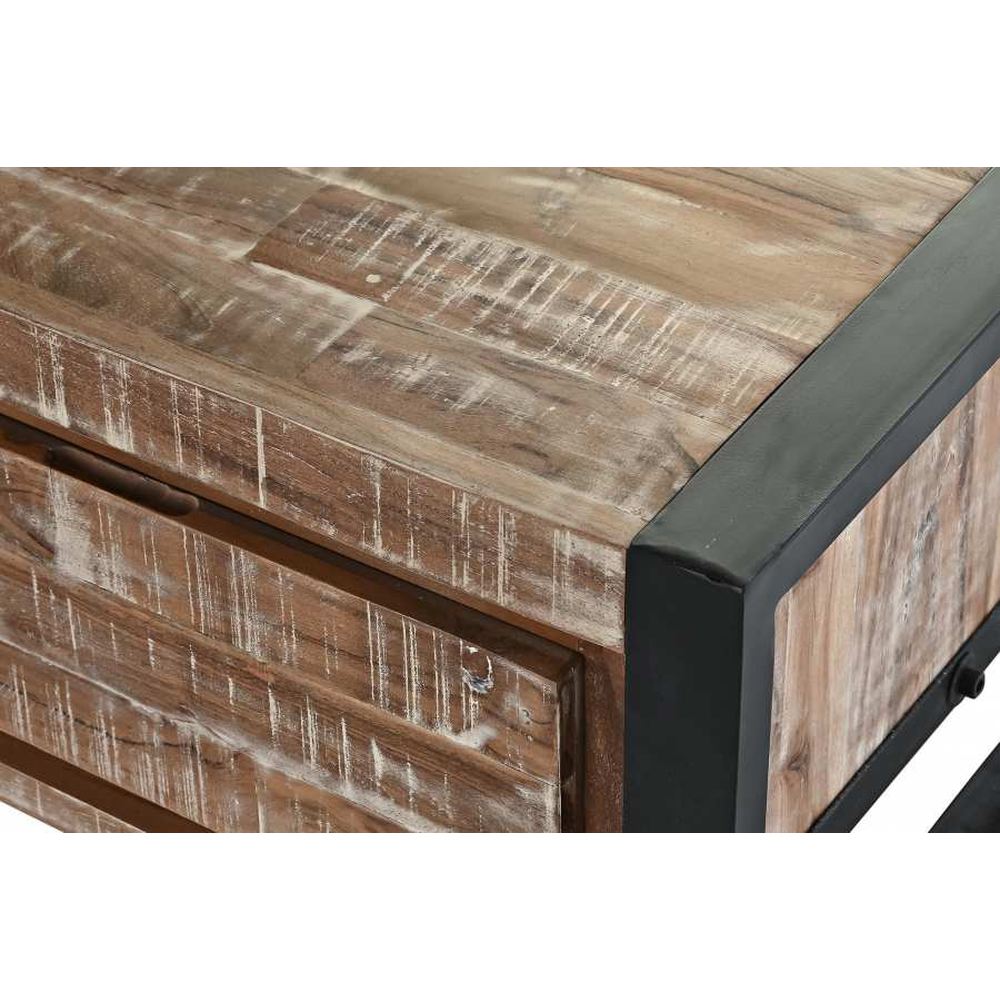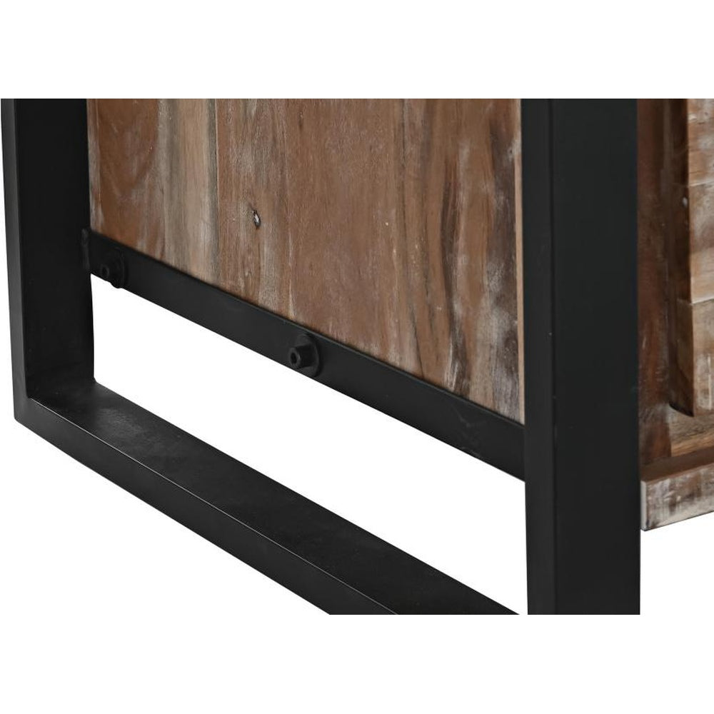 NOTE: Peso 36 kg; 2 cassetti (41 × 29 × 14 cm); legno massello di acacia; struttura metallo nero; finitura decapata artigianale.