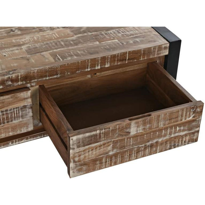 Il tavolino industrial decapato combina l’autenticità del legno massello di acacia con la solidità del metallo, dando vita a un complemento d’arredo dal carattere deciso, perfetto per interni industrial chic. La finitura decapata esalta le venature e dona un effetto vissuto ricercato, mentre la struttura marrone/nero crea un contrasto elegante e contemporaneo. Dotato di due cassetti (41 × 29 × 14 cm), offre spazio funzionale per oggetti quotidiani. Ideale per salotti moderni, si abbina perfettamente ai tavolini in legno massello di lusso. Disponibile anche nel nostro Outlet Arredamento di Lusso con sconti fino al 70%.
