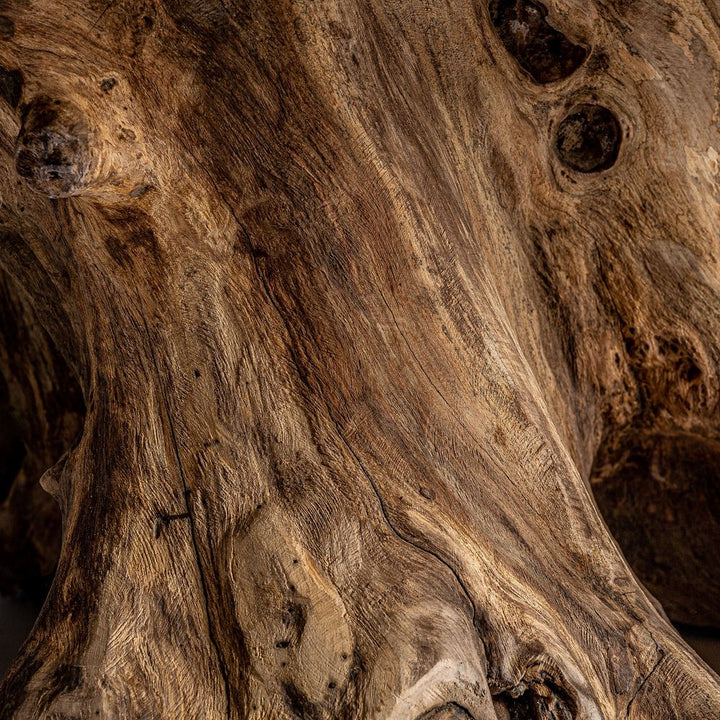 Materiali Legno massello di suar marrone con finitura anticata e base scultorea naturale