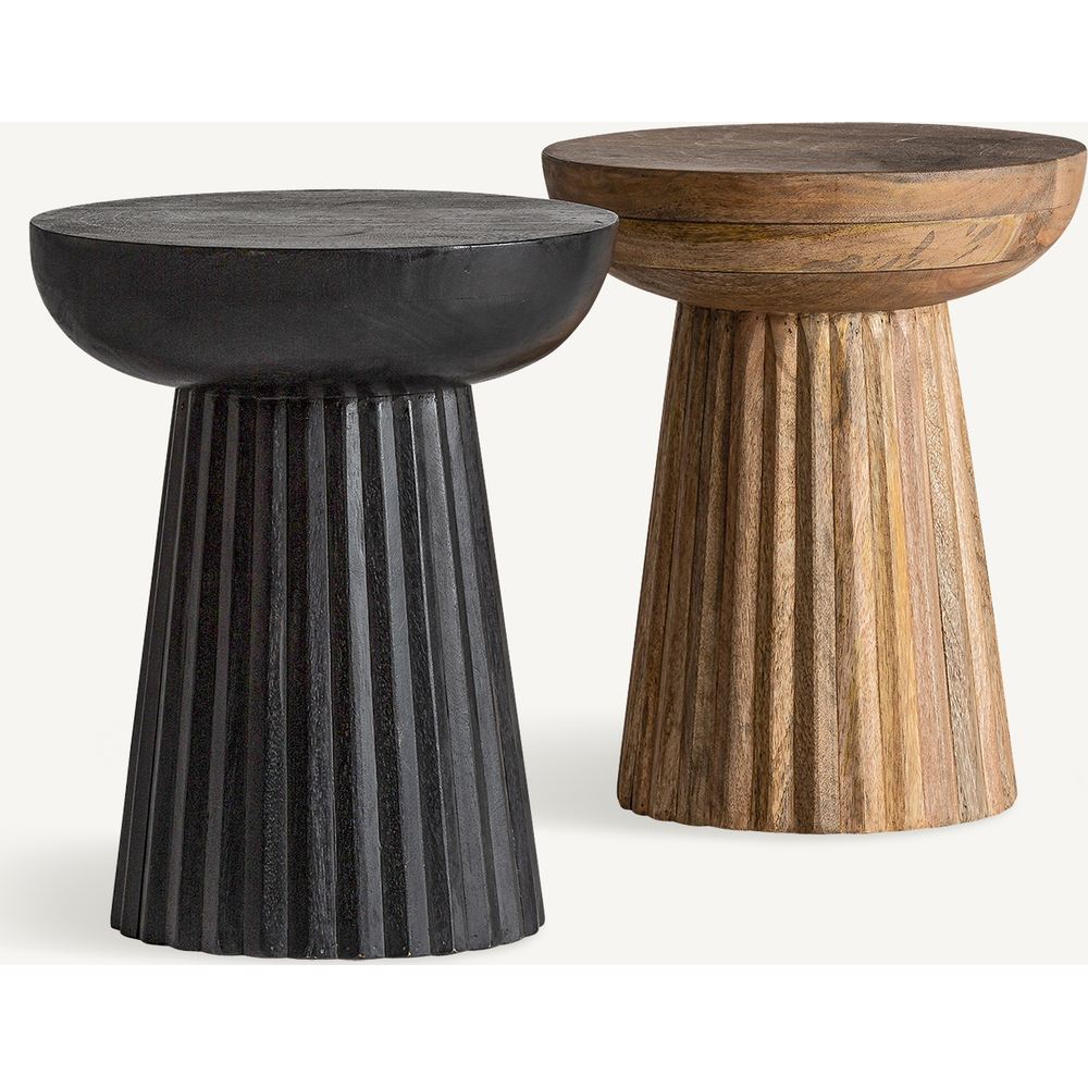 Tavolino Alto Rotondo Plissettato in Legno di Mango Naturale