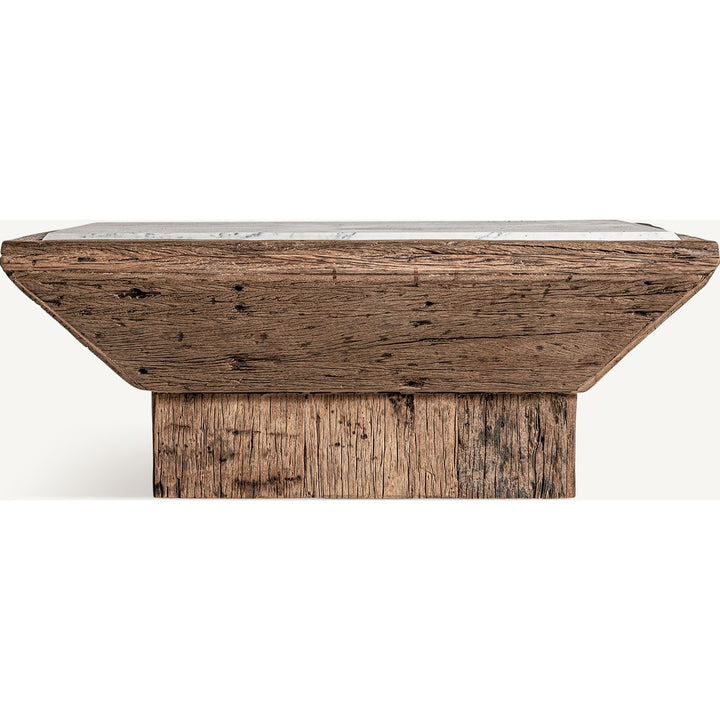 Tavolino Rustico Quadrato in Legno di Pino Riciclato e Marmo Bianco