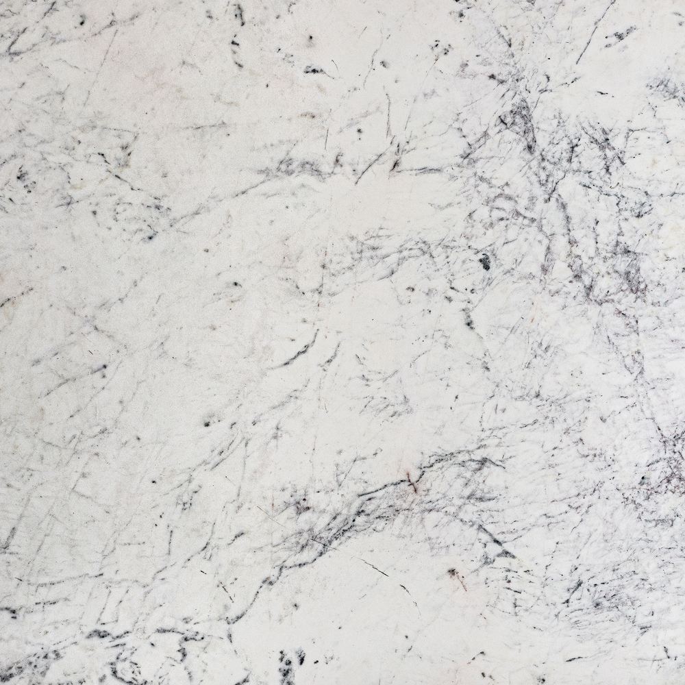 NOTE: Piano in marmo bianco lucido con venature naturali, struttura in pino riciclato marrone invecchiato, peso 77,5 kg, realizzazione artigianale, portata 30 kg, pulizia con panno morbido e prodotti neutri.