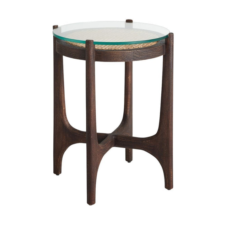 Tavolino Rotondo da Salotto in Mango, Rattan e Vetro