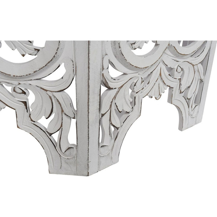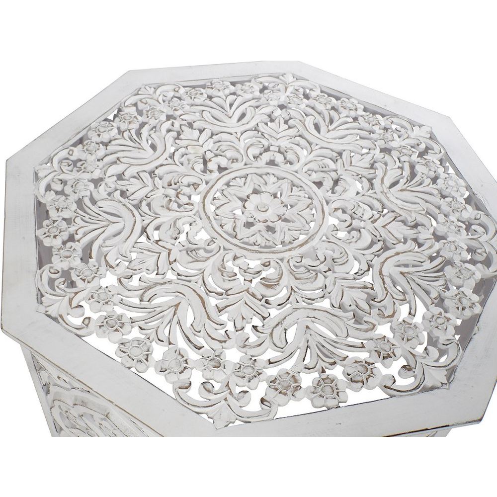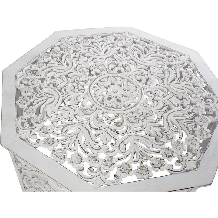 Tavolino Indiano Bianco Shabby in Legno Massello Intagliato