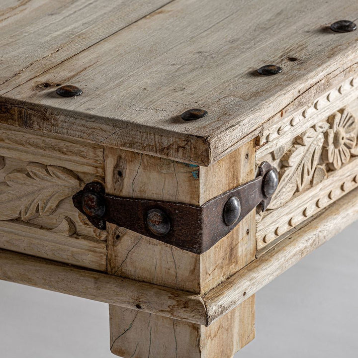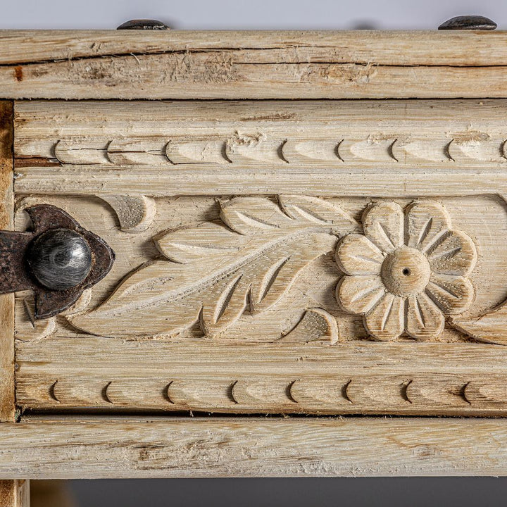 Tavolino Orientale in Legno di Mango Crema Invecchiato