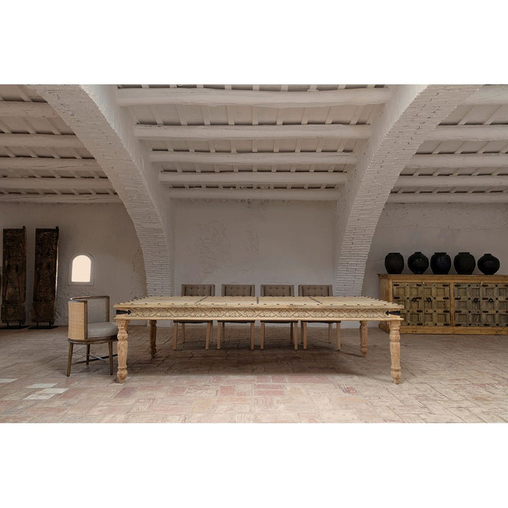 Il tavolino orientale in legno di mango crema invecchiato è un capolavoro di artigianalità che unisce eleganza esotica e calore naturale. Le sue dimensioni generose e le tonalità chiare donano luminosità e armonia a salotti eleganti, ambienti orientali di lusso e spazi etnici raffinati. Realizzato a mano, ogni tavolino presenta lievi variazioni di tonalità, nodi e venature che ne esaltano la unicità artigianale. Il piano spesso 20 cm e la struttura in legno massello offrono stabilità e solidità, trasformandolo in un elemento d’arredo di grande carattere. Scopri la storia e la filosofia che ispirano ogni nostra collezione visitando la pagina Chi siamo. Proposto con sconti fino al 70% su Ethnic Chic, rappresenta un perfetto equilibrio tra tradizione e design contemporaneo.