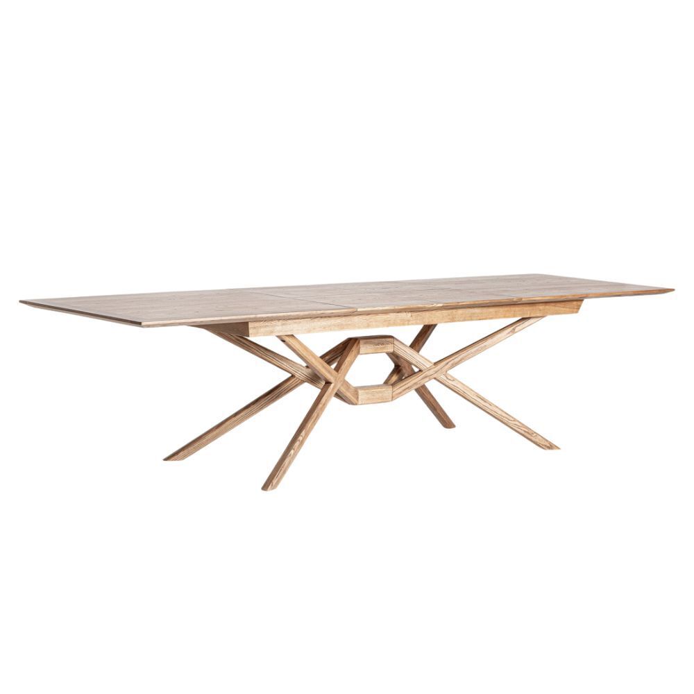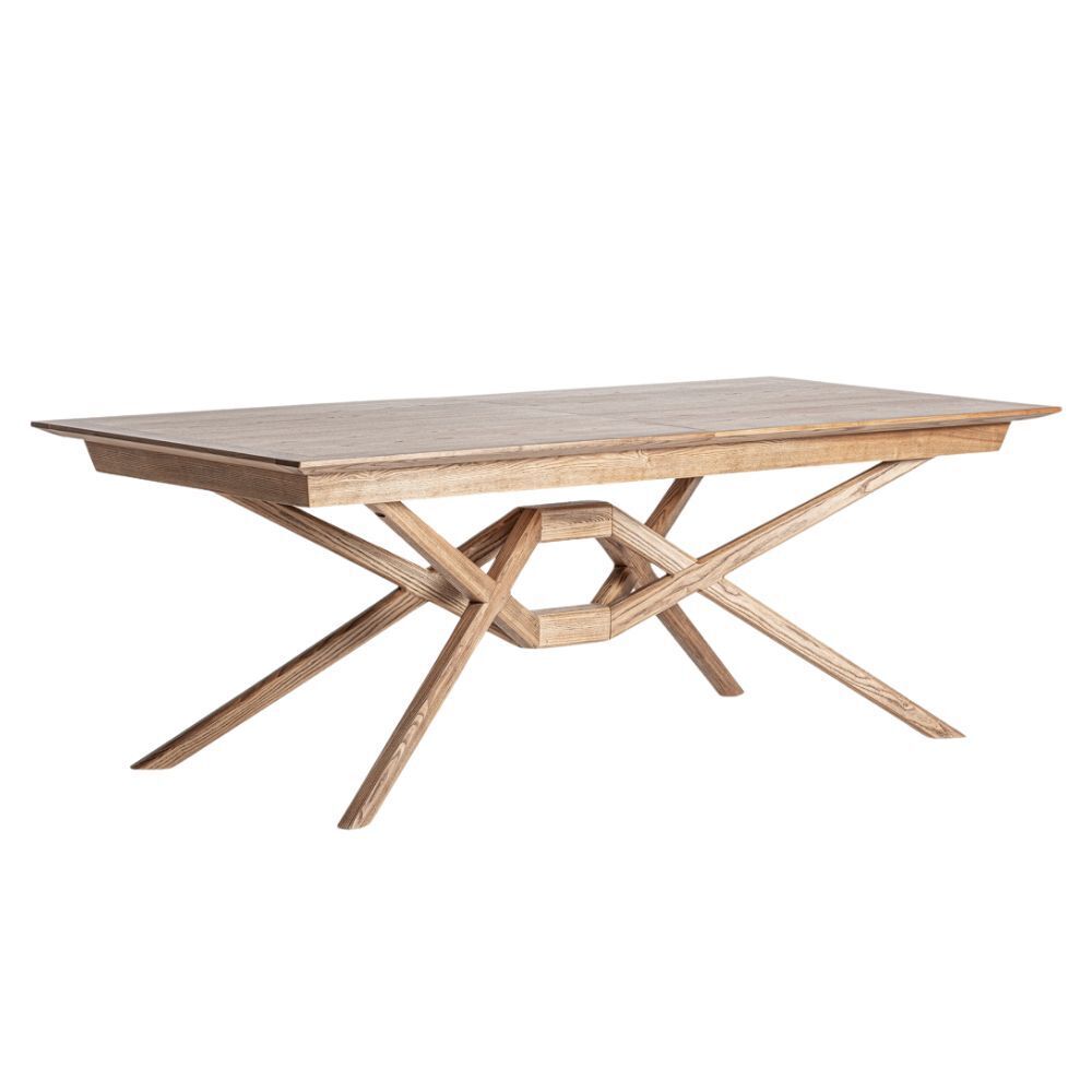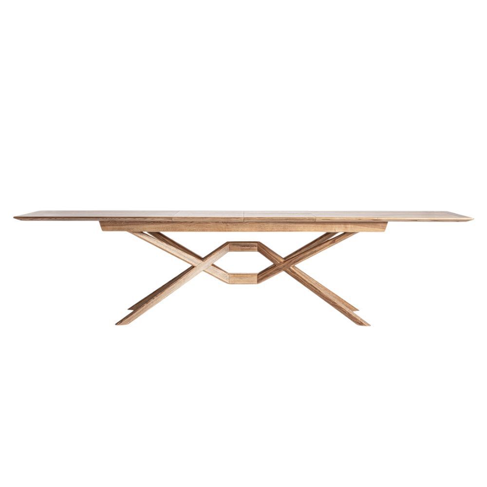 Tavolo in stile contemporaneo, caratterizzato da linee essenziali e materiali naturali che si adattano perfettamente ad ambienti eleganti e moderni, unendo funzionalità e design raffinato.