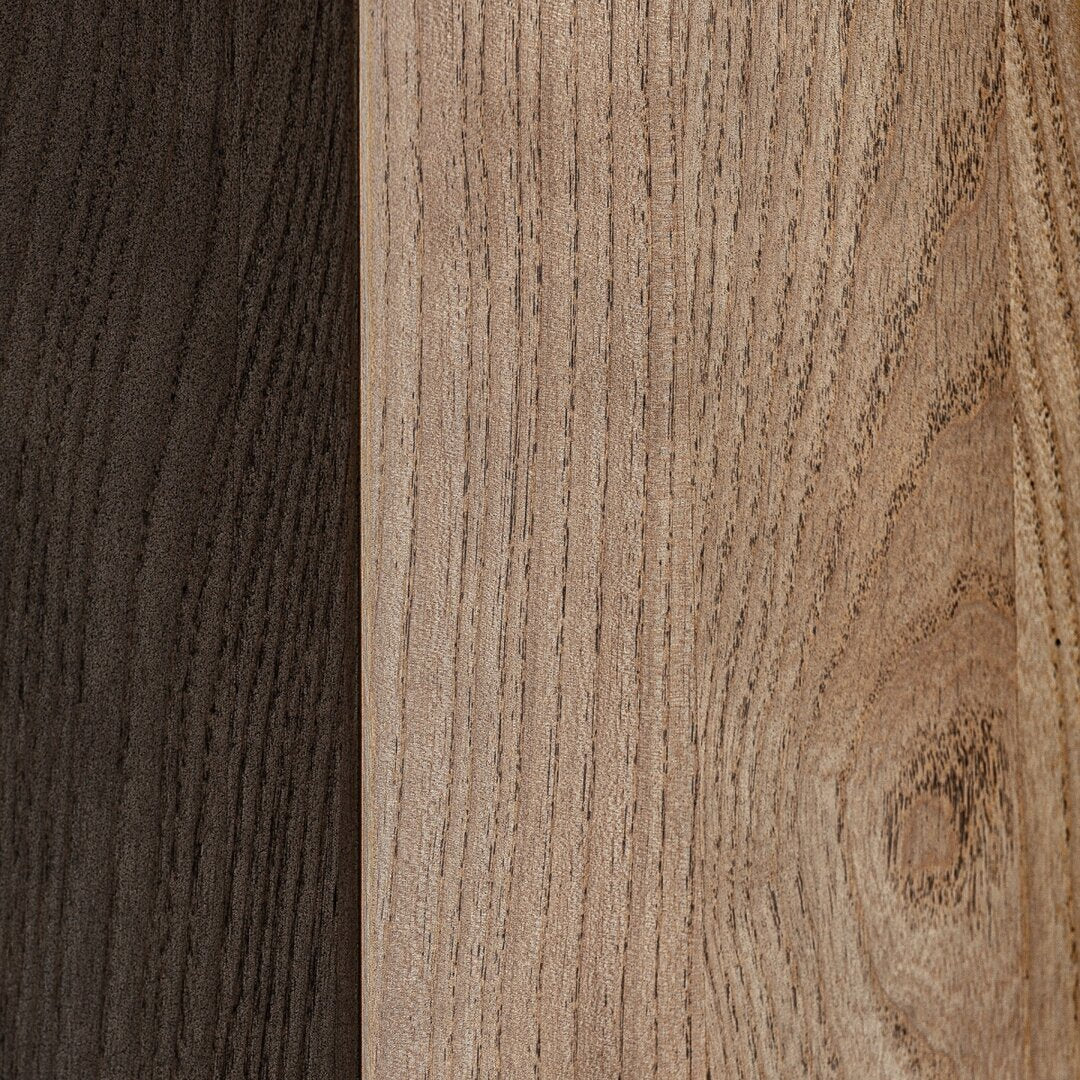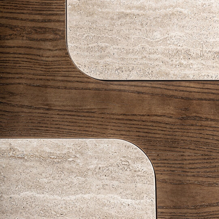 Realizzato in legno di rovere marrone e impreziosito da un elegante top in travertino beige, unisce la solidità del legno alla raffinatezza della pietra naturale. Perfetto per ambienti contract o domestici, si distingue per la qualità artigianale e la cura dei dettagli. Ogni pezzo è unico, grazie alle naturali variazioni di tono e texture.