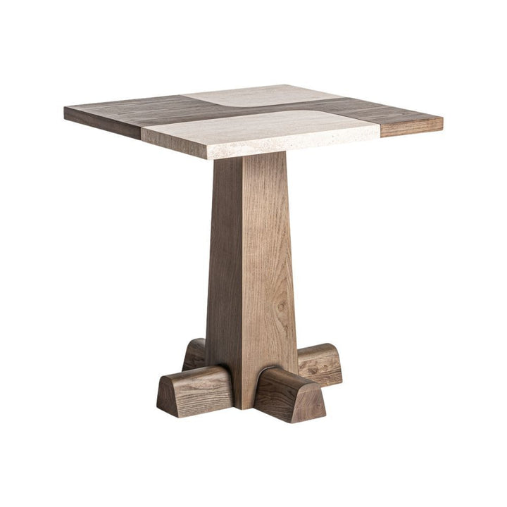 Tavolo Bar con Top Quadrato in Rovere e Travertino
