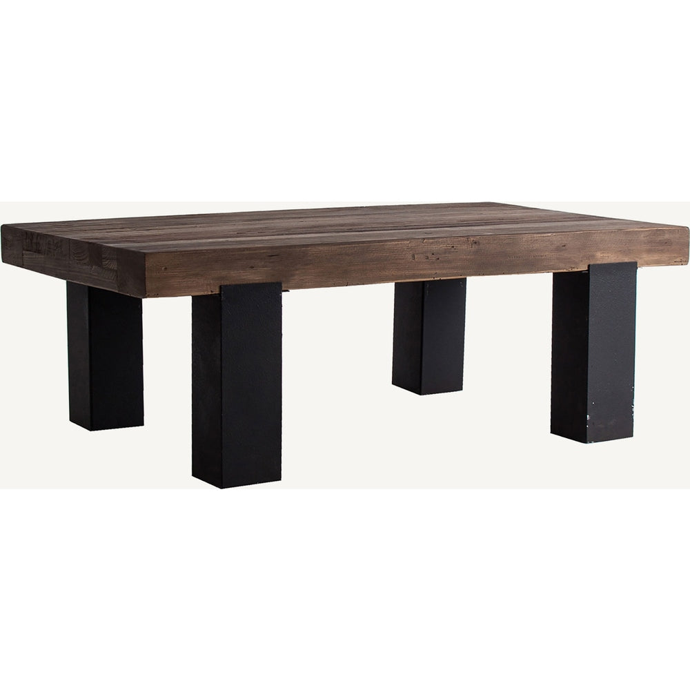 Tavolo Basso Industrial in Legno Massello di Pino Riciclato