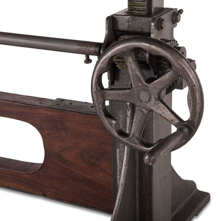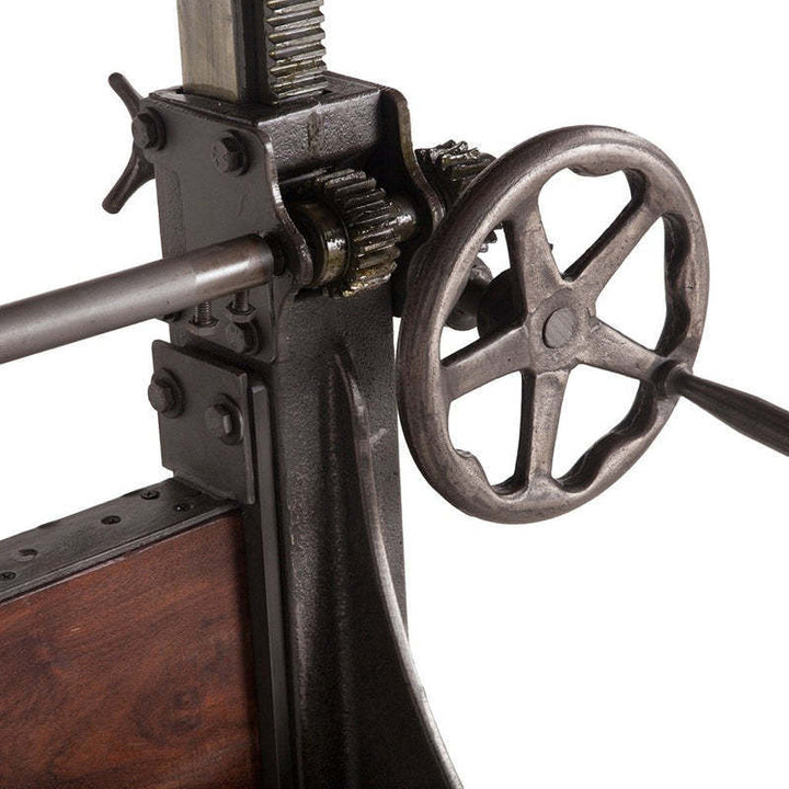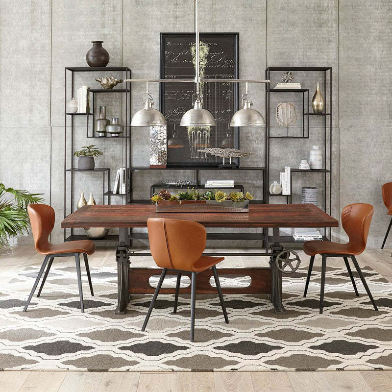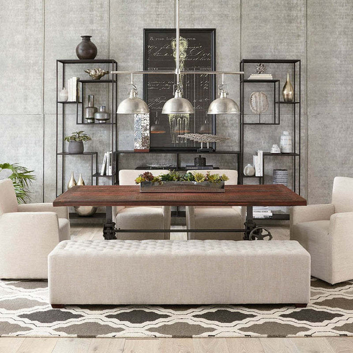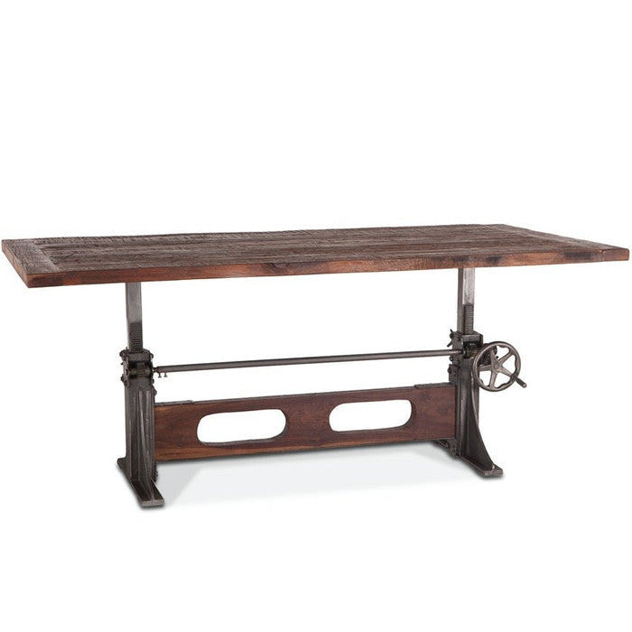 Con un design che unisce l'eleganza dell'antico con il carattere industriale, il tavolo da pranzo Industrial è costruito utilizzando legni duri recuperati e incorpora una base regolabile in altezza. Potrai goderti la tua cena alla tradizionale altezza del tavolo o sollevare il piano per offrire un intrattenimento in piedi durante le feste. Questo tavolo, con la sua manovella pienamente operativa, ha lo stile e la funzionalità per rispondere a tutte le tue necessità.